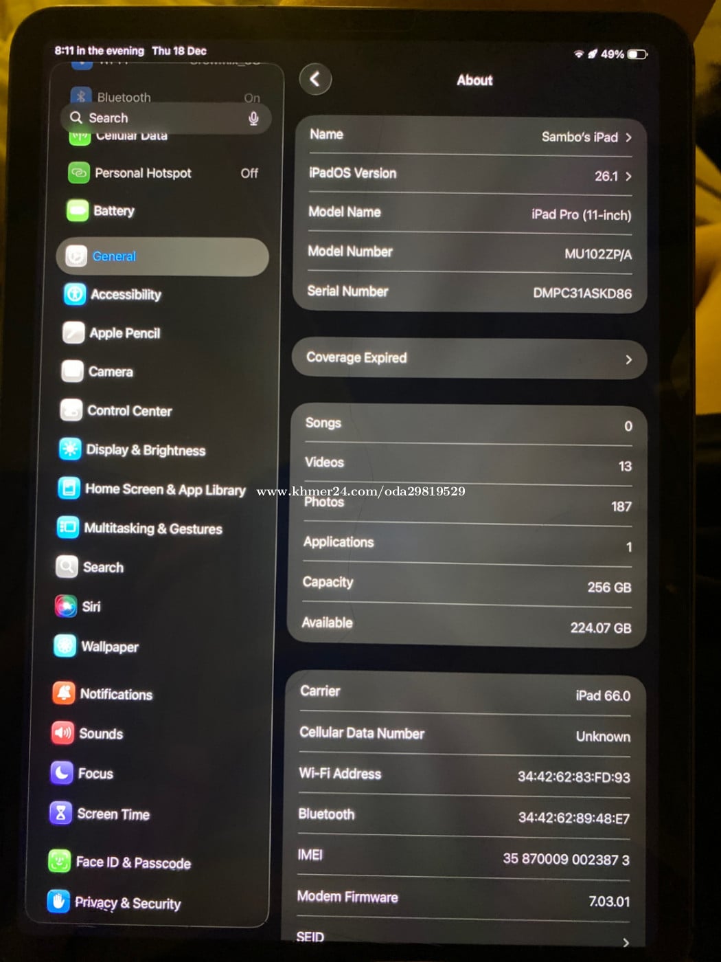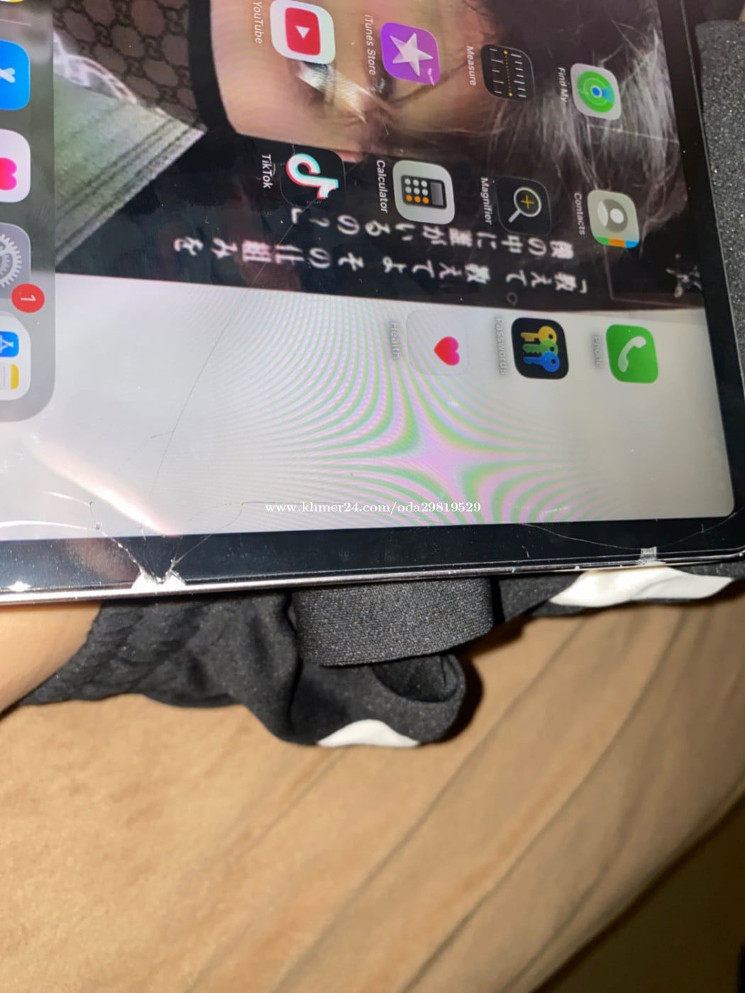 Ipad Pro 11inch 256G Sim+wifi បែកដូចរូបហើយបែកស្ពរអេក្រក់ពណ៍សតែបើកDarkmodeមើលអត់ឃើញធានាអេក្រង់អោយ