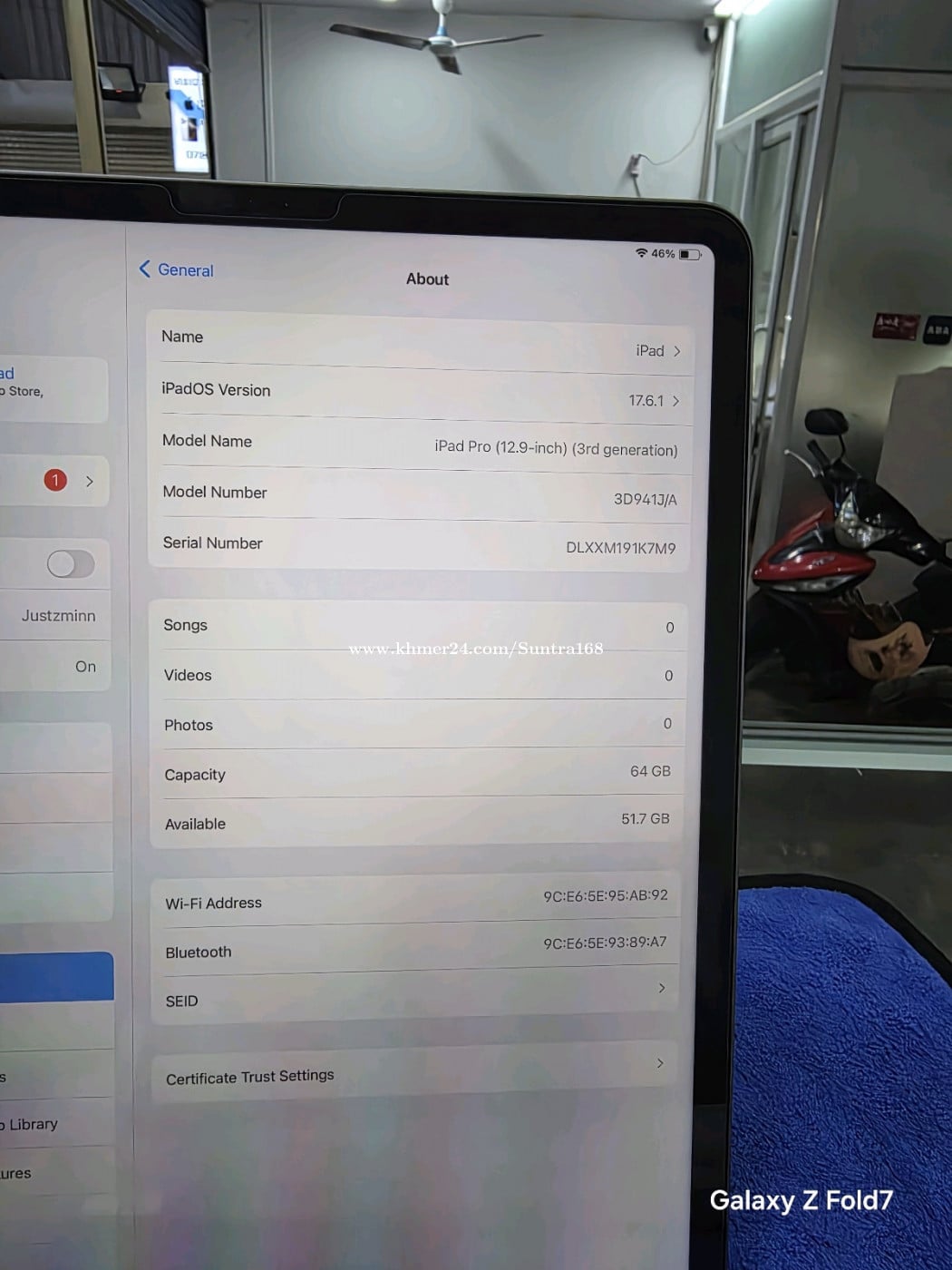 Ipad Pro12.9 2018 64G Wifi only សំណុំសុីន ស្អាត