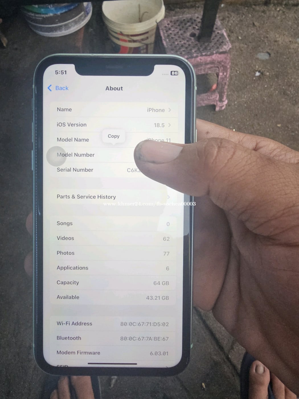 Iphone 11 64G សានុំហ្ស៊ីនមានស្កេន កាំមេរ៉ាមុខក្រោយច្បាស់ 160$ 010276xxxClick To Call 078887xxxClick To Call