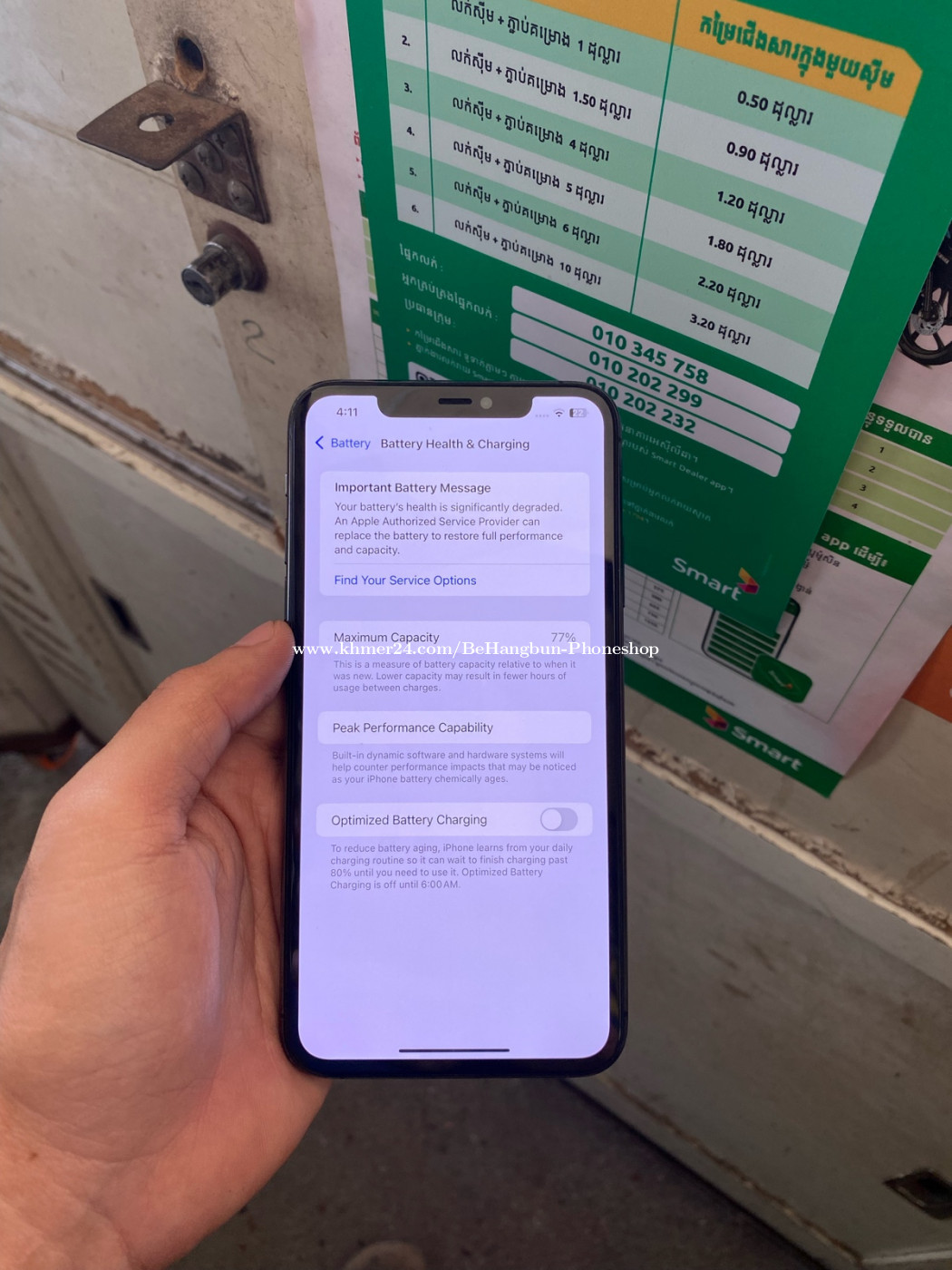 iPhone 11 Pro Max 64G ស្អាត98% មានស្កេន អេក្រង់GX ធានាម៉ាសុីនហ្សុីន នឹងធានាការប្រេីប្រាស់រយៈពេល15ថ្ងៃ មានឆ្នាំងសាក មានបង់រំលស់ជាមួយហាង មានសេវ៉ាដឹកជញ្ជូន25ខេត្ត-ក្រុង ទីតាំង : ជិតស្តុបលូប្រាំ ស្ទឹងមានជ័យ Tel : 099777xxxClick To Call / 081336xxxClick To Call / 0972312xxxClick To Call
