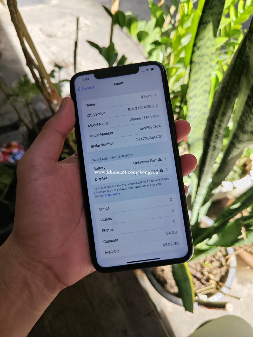 iPhone 11 pro max 64GB ស្កេន ដូរអេក្រង់ស៊ីន ស៊ីម២ លក់180$