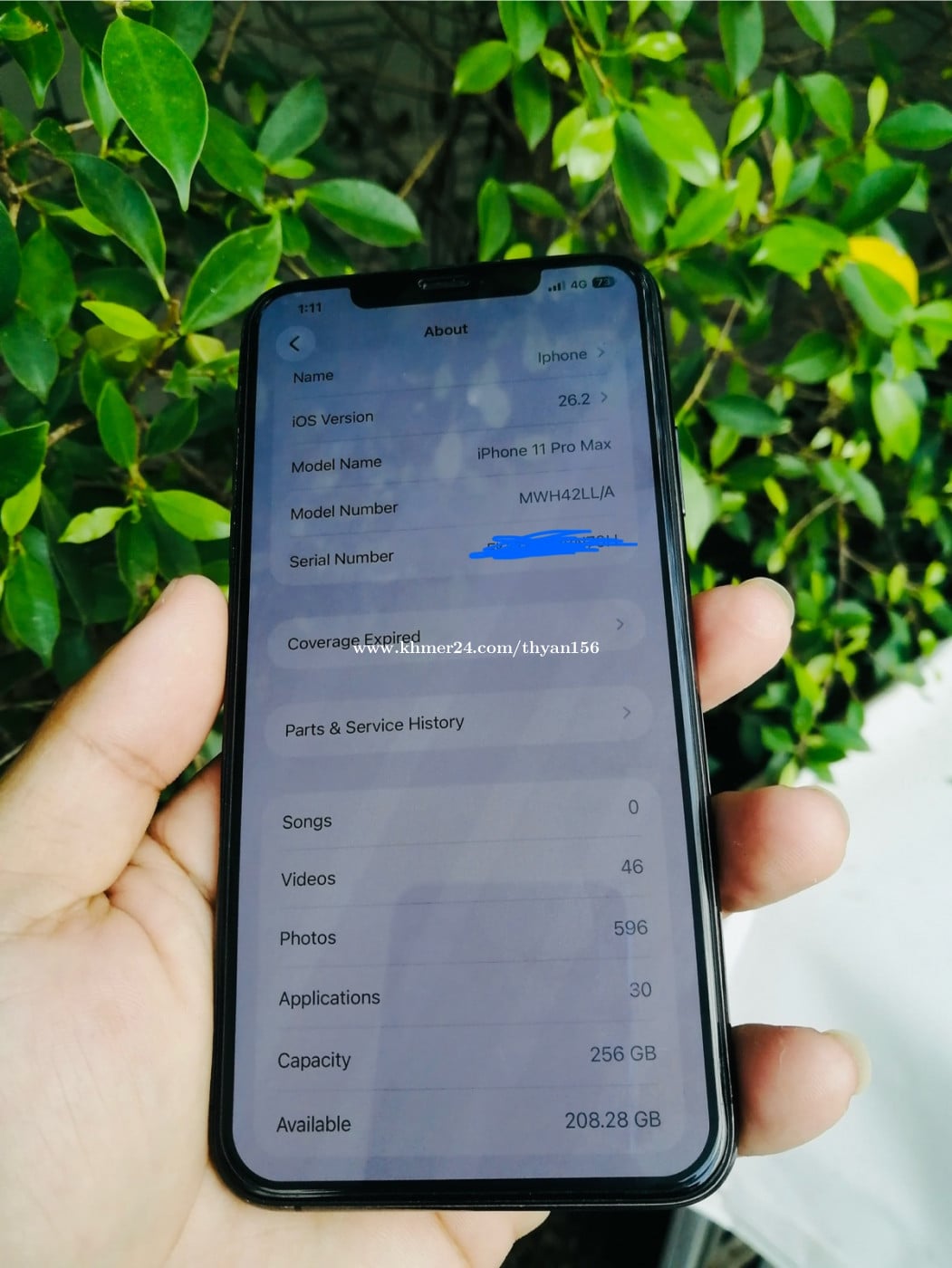 iphone 11 pro max LL/A HD256GB iphone condition 97% ដូរថ្ម,មានស្កេន វៃដូក៏បាន ចង់ដូរសេរី camon 30 pimire ឬ Xiaomi