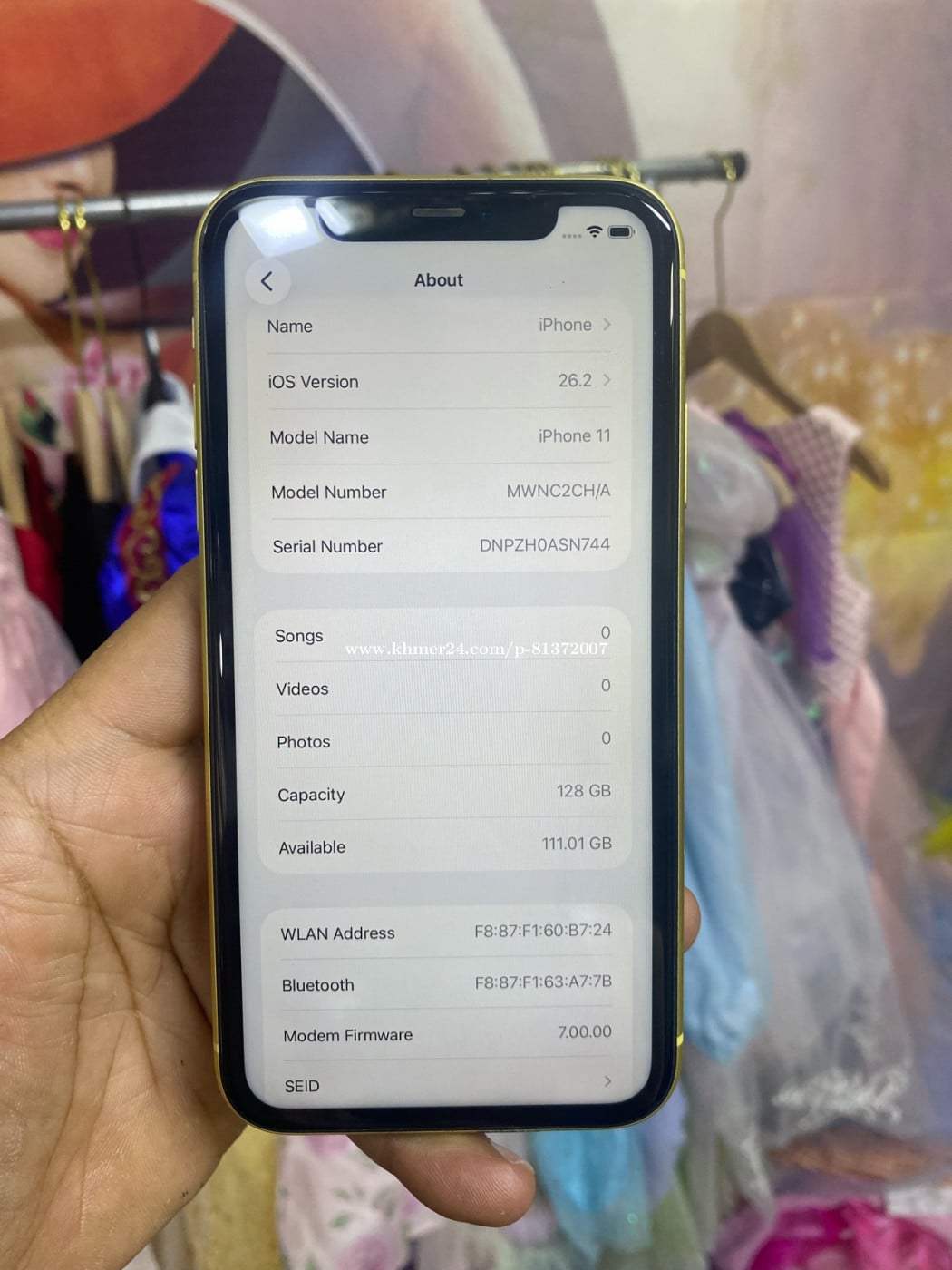 iPhone 11 128G មានស្កេន ថ្ម96% ស្នាមស្ព័រអេក្រងបន្តិច ទើបទិញ ត្រូវការលុយ