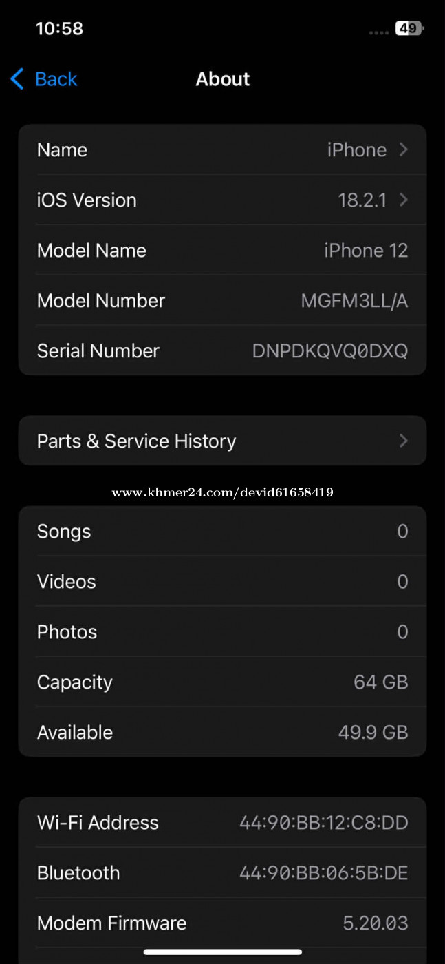 លក់ iphone 12 64GB LLA 97% Display and battery original តម្លៃអាចចរចាបាន