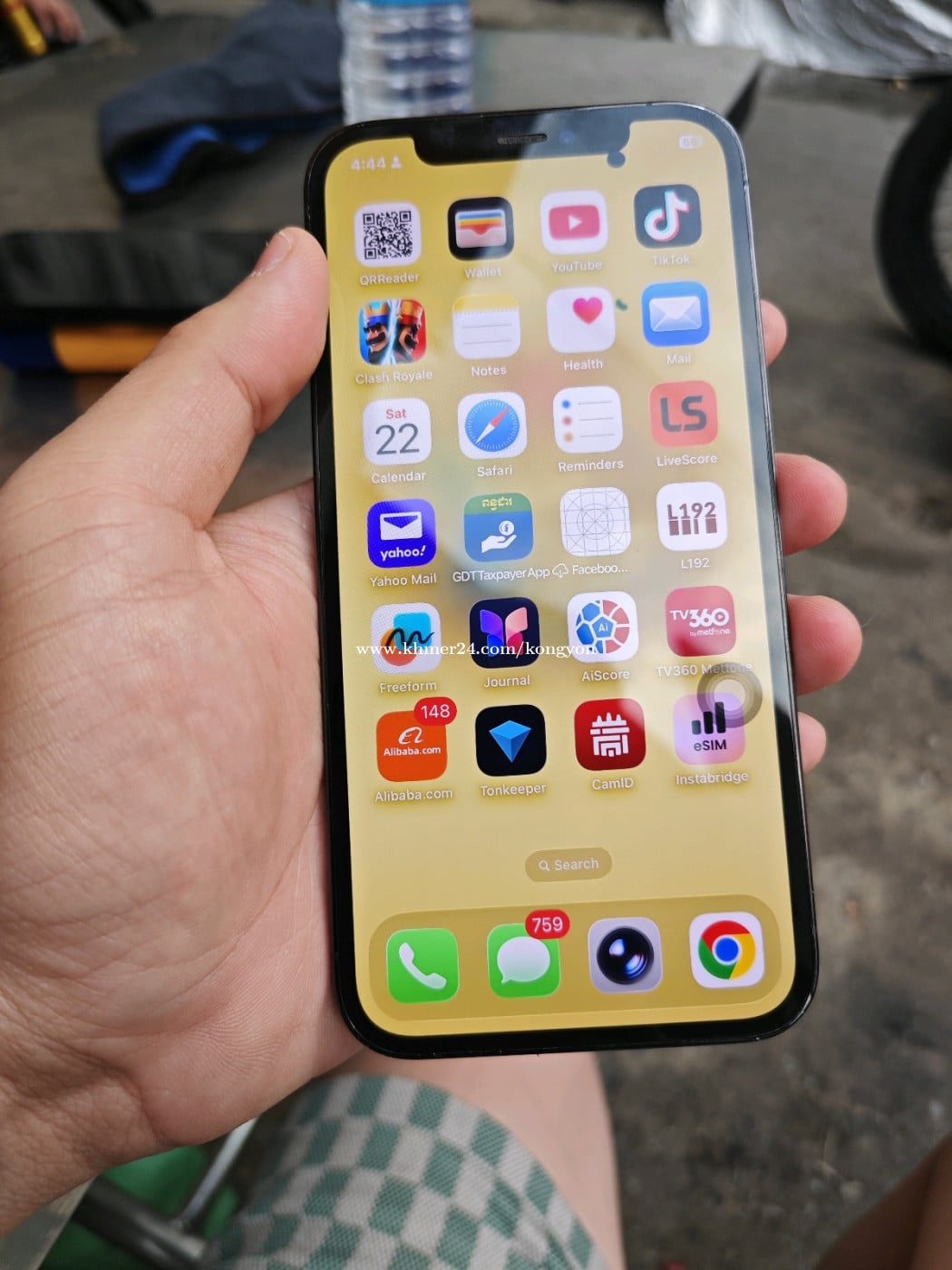 iPhone 12 pro តូច 64GB អេក្រង់អុចខ្មៅដូចរូប អត់ស្ដេនលក់190$