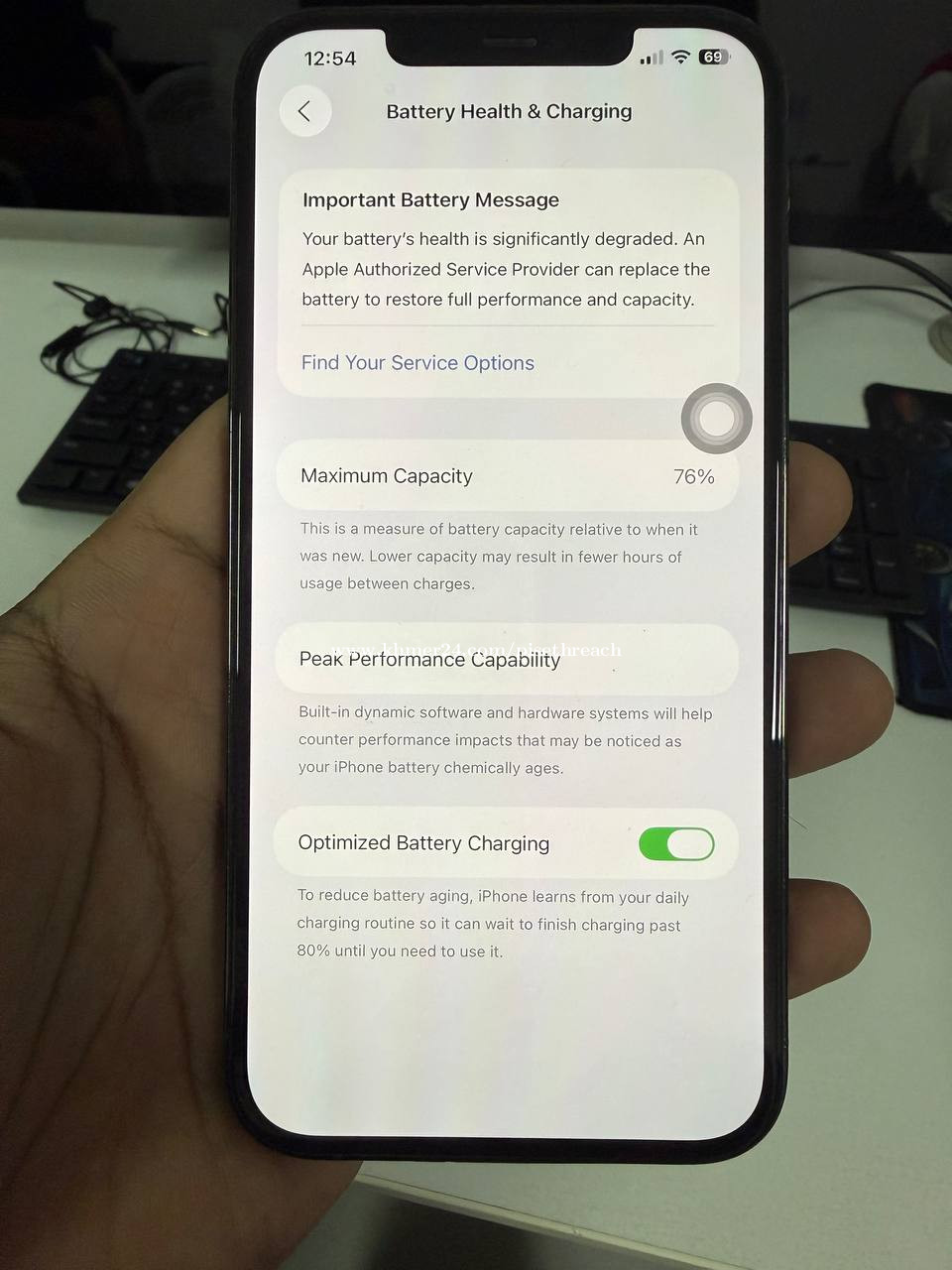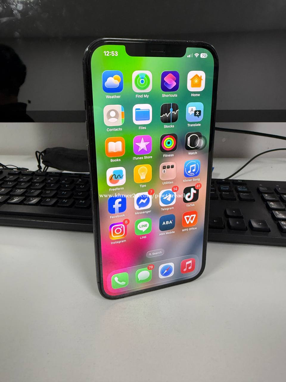 Iphone 12 pro max Memory : 256G Battery Health : 76% Condition : 98% តាំងពីប្រើមកបិទស្កុតជាប់ បកស្កុតមកថ្មី មិនដែលដូរថ្ម មិនដែលជួសជុល មានឆ្នាំងសាកនិងខ្សែ