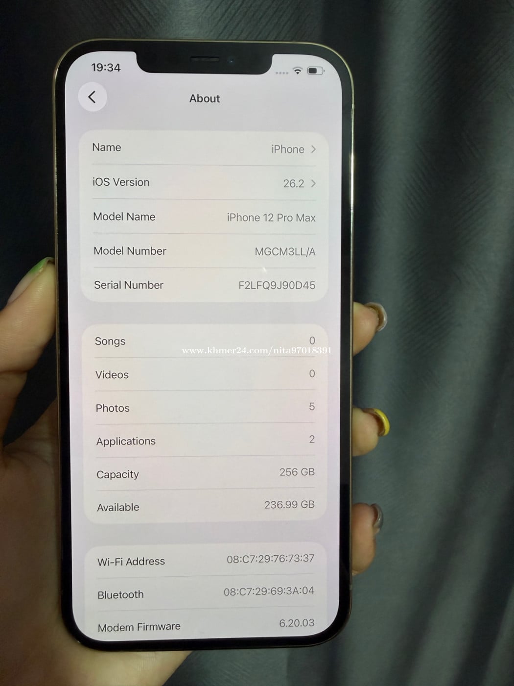 iPhone 12 Pro Max LL/A Storage 256G Battery 87% សាណុំសុីនស្អាត 99%