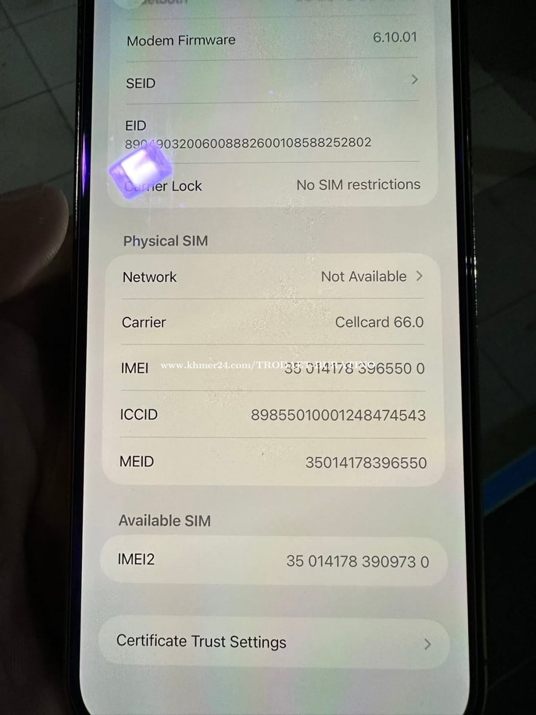 LLA Sim + Esim Screen original 100% អត់មានឆ្កូតទេ តួសំបកស៊ីតិចៗ ប្តូរថ្មីរួចហើយ ថ្មកើនអំពែរ ម៉ាស៊ីនមិនដែលជួសជុល អាចហែលទឹកបាន ថែមសំបក Coach អោយ ១