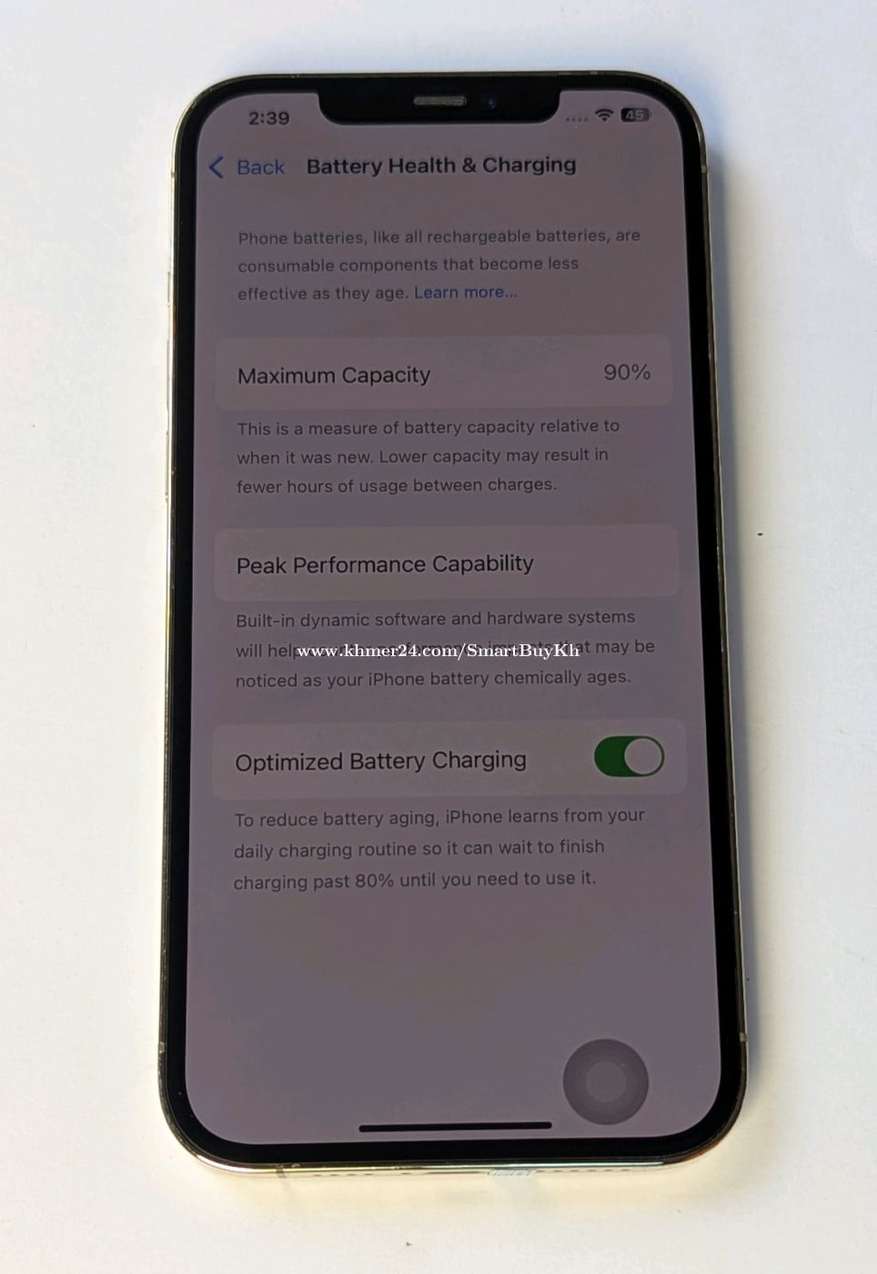 iPhone 12 Pro Max 256 GB (CH/A) ស៊ីម២ ស្អាត 98% 📣 ស៊ីម ២ (Dual SIM) តម្លៃសមរម្យ: $369, សូមទំនាក់ទំនង ឬមកមើលដល់ទីតាំងផ្ទាល់ សម្រាប់ ព័ត៌មានលំអិ ម៉ូដែល: 256 GB សម្រាប់អ្នកត្រូវការទំហំធំ ស្អាតកម្រិត 98% Grade A- ម៉ាស៊ីនសុទ្ធសំណុំហ្ស៊ីន, អេក្រង់, កាម៉េរ៉ា (all original) សុខភាពថ្ម 90% (ជាថ្មហ្ស៊ីន) អេក្រង់ និងកាមេរ៉ា ស៊ីន Face ID ដំណើរការធម្មតា ✨ថែមជូន៖ ឆ្នាំងសាក, ខ្សែសាក។ 🤝 ធានាជូនរយៈពេល ៣០ ថ្ងៃ (១ ខែពេញ), និង Software 3 ខែ 📞 010717xxxClick To Call | 📥 Telegram: https://t.me/SmartBuyKh