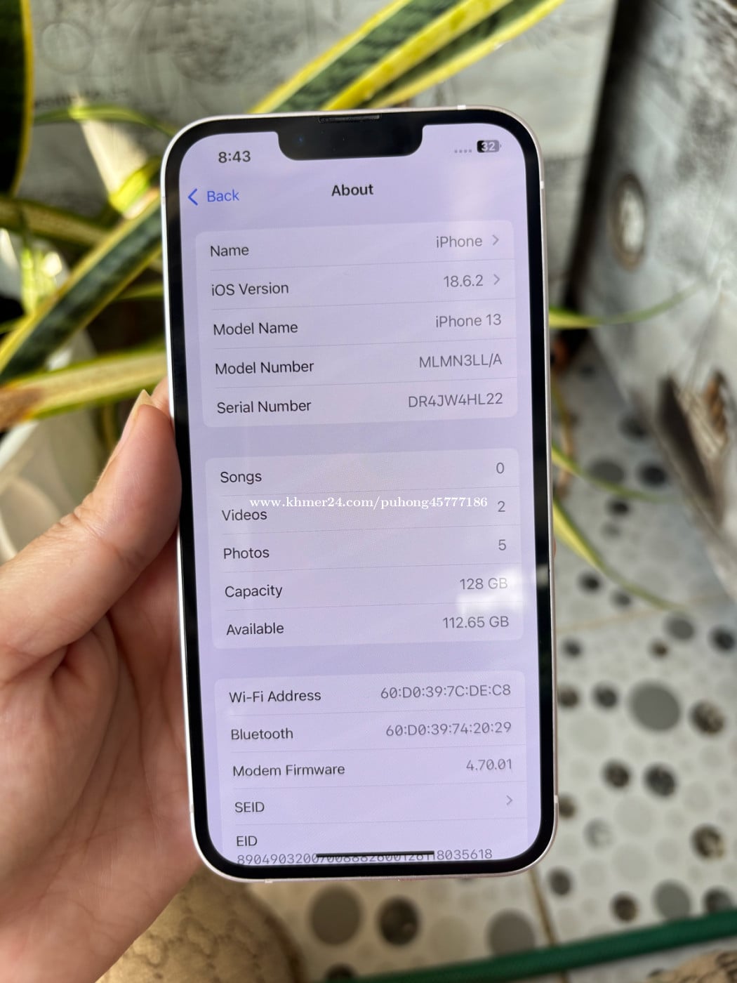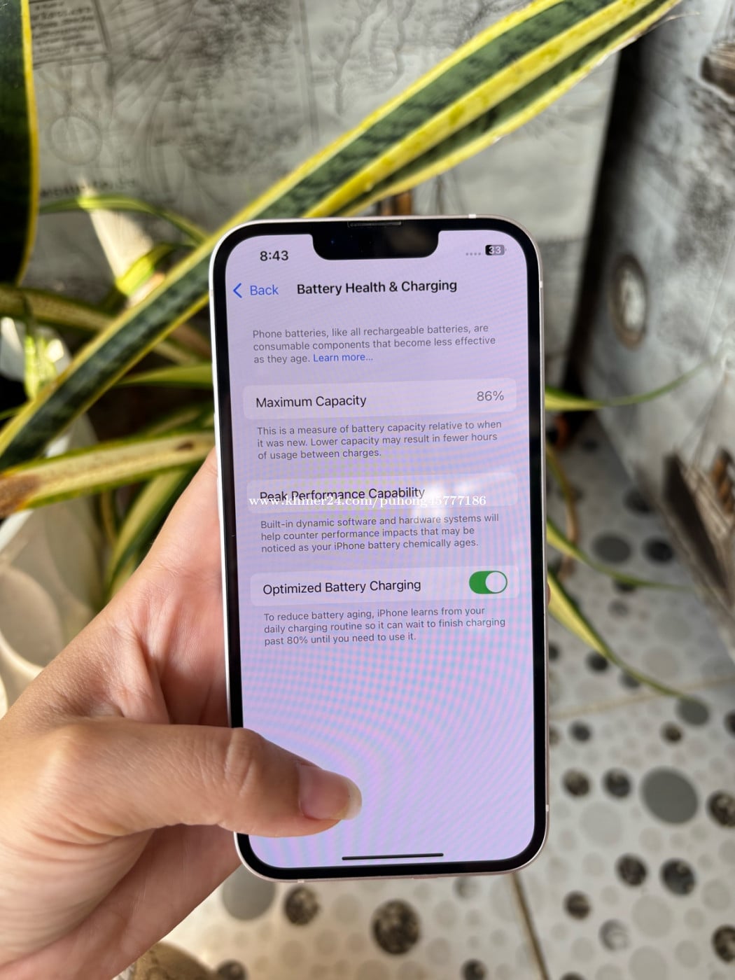 iPhone 13 ផ្កាឈូក សានុំណែន ថ្មស៊ីន86%