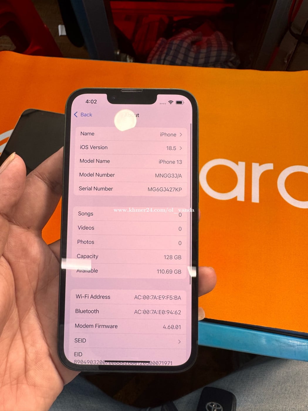 iPhone 13 Sim 1 + ESIM Original 100% Condition 99% Warranty 1 month មួយដើម 330$
