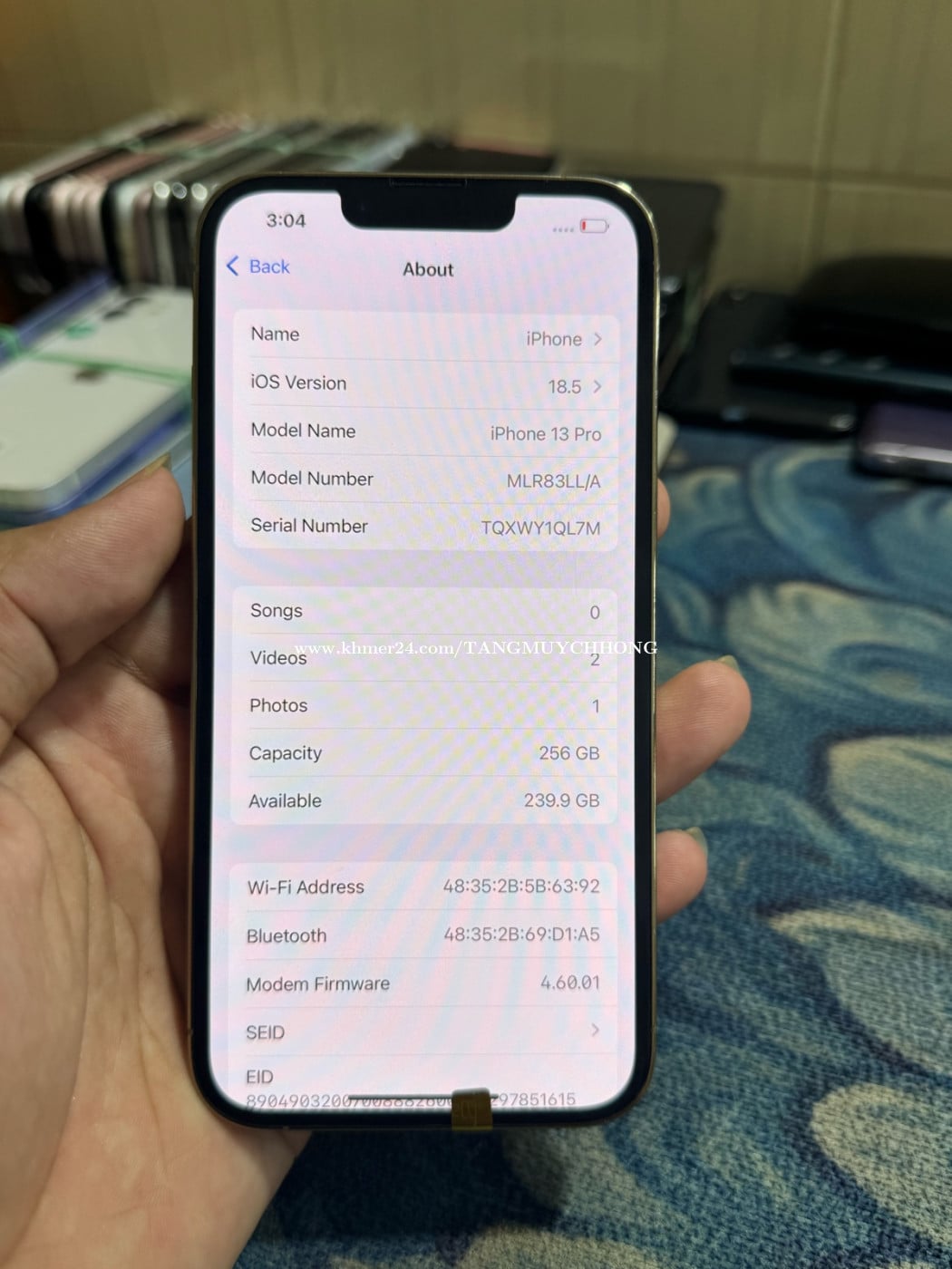 iPhone 13 Pro 256G សំណុំសុីនណែន ស្អាត99% 385$