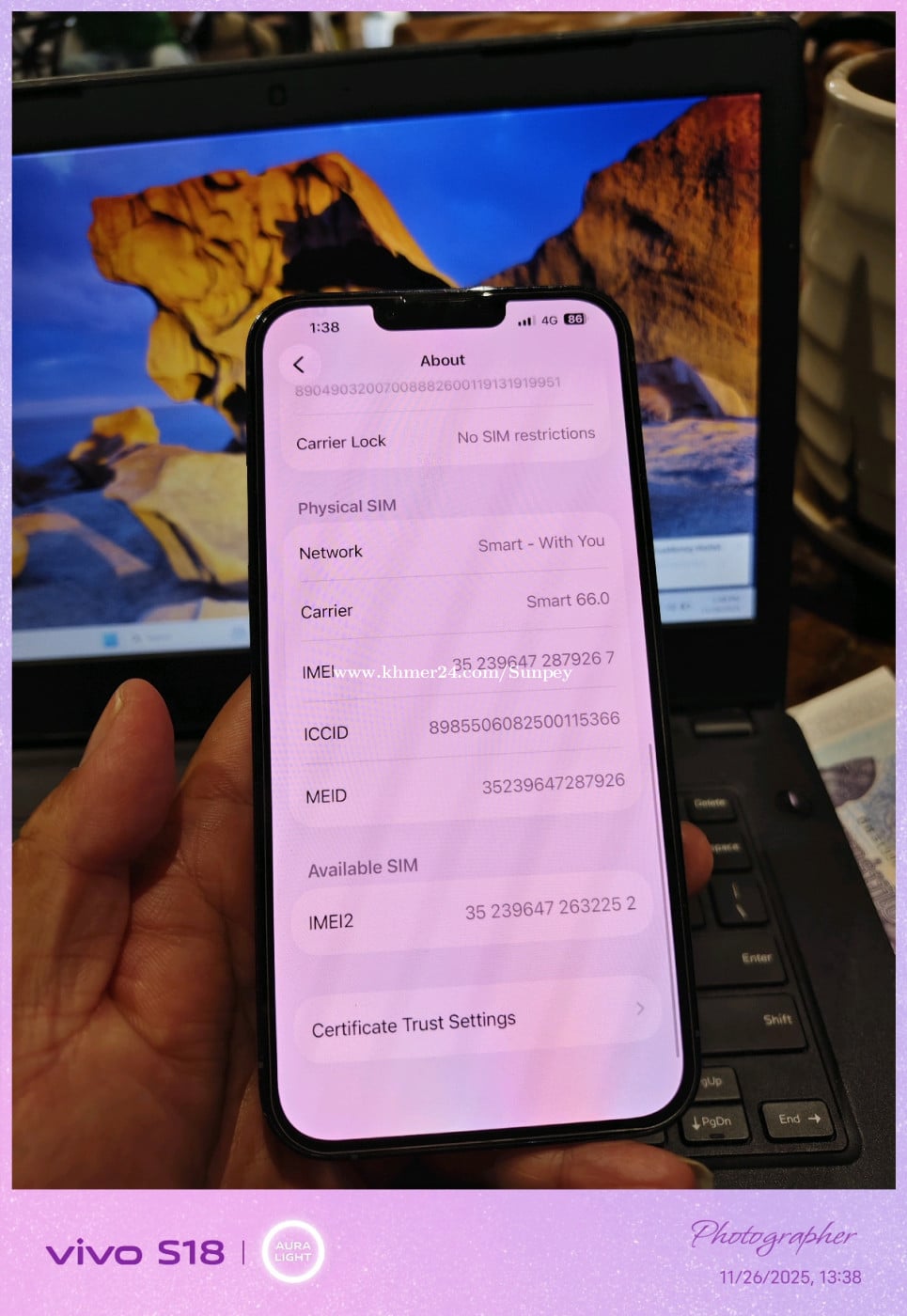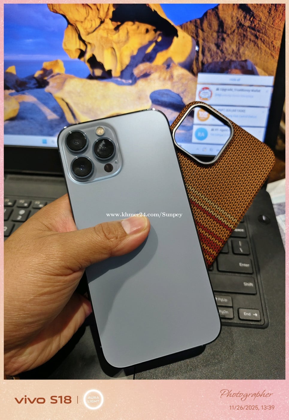 Iphone 13 Pro Max សានុំសុីន Bypass Sim Wifi 98% • អេក្រង់សុីន • មានស្កែនមុខ • ថ្មសុីននៅ 81% • update version បាន ដាច់ 295$ Free airport copy+ case + screen