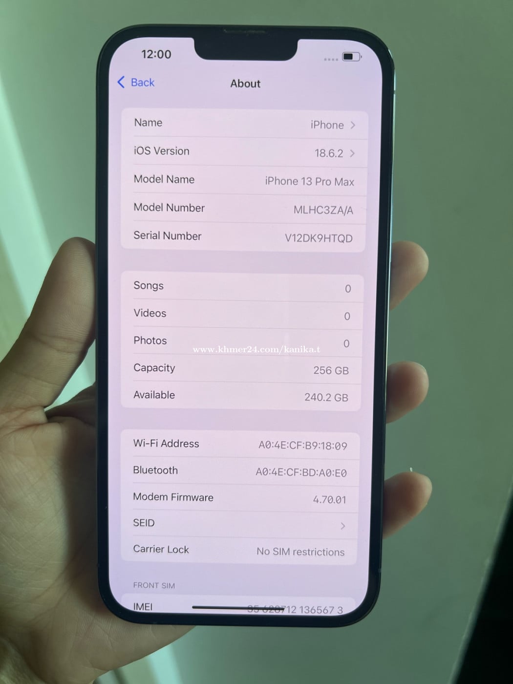 iPhone 13 Pro max 256GB តួទូរស័ព្ទនៅស្អាត 99% ថ្មសុីន 81% សំណុំសុិន LL/A អត់ដែលជួសជុល