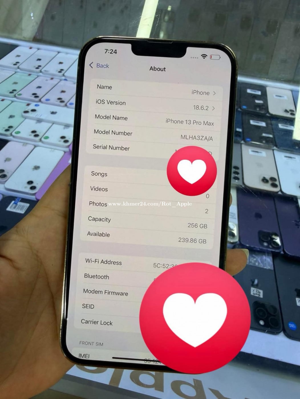 iPhone 13 Promax Memory 256G ZA ហ្សីនទាំងអស់ ធ្លាប់ដូខ្នង តែដាក់ខ្នងហ្សីនវិញ មានស្កែន