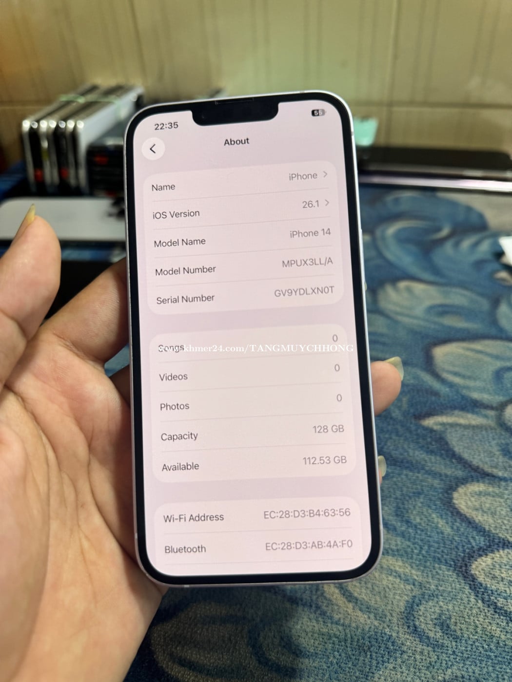 iPhone 14 128G LLA សំណុំសុីនណែន ស្អាត98% 340$