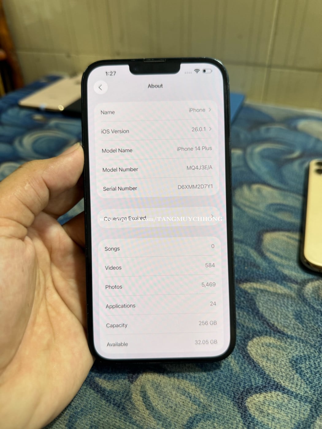iPhone 14 Plus 256G សុីនណែន ស្ទើកាមេរ៉ា មានកន្លែងដាក់សុីម លក់345$