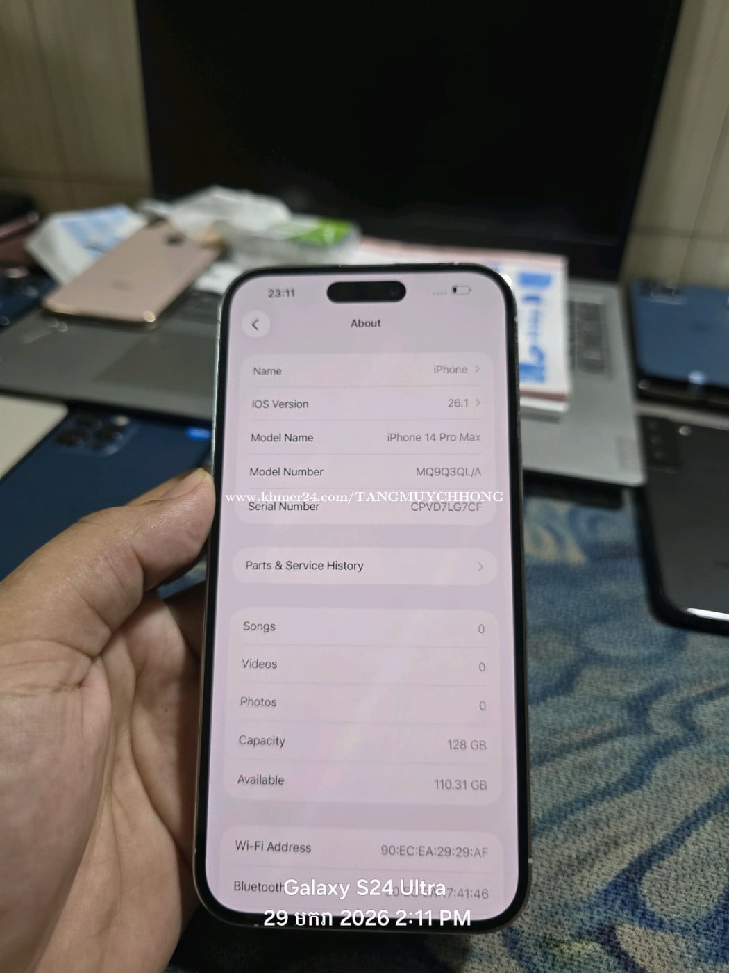 IPhone 14 Pro max 128G សំណុំស៊ីន ដូថ្ម 470$