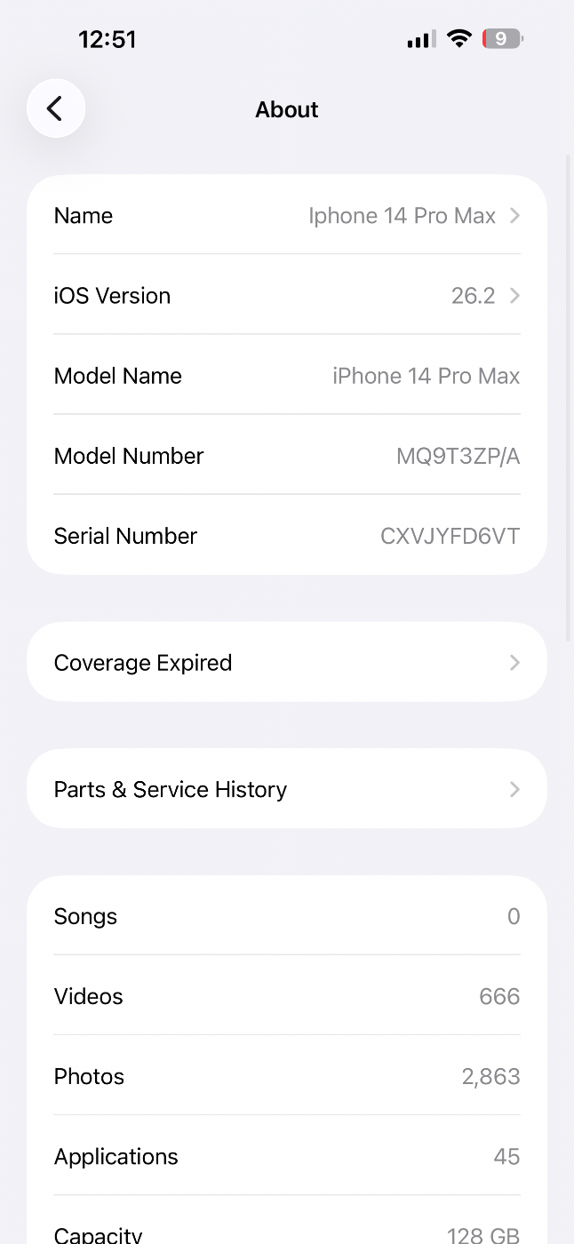 iPhone 14 Pro Max 128g (520$) សុំណំសុីនមិនធ្លាប់ជួសជុល 95% ប្រើផ្ទាល់ខ្លួន