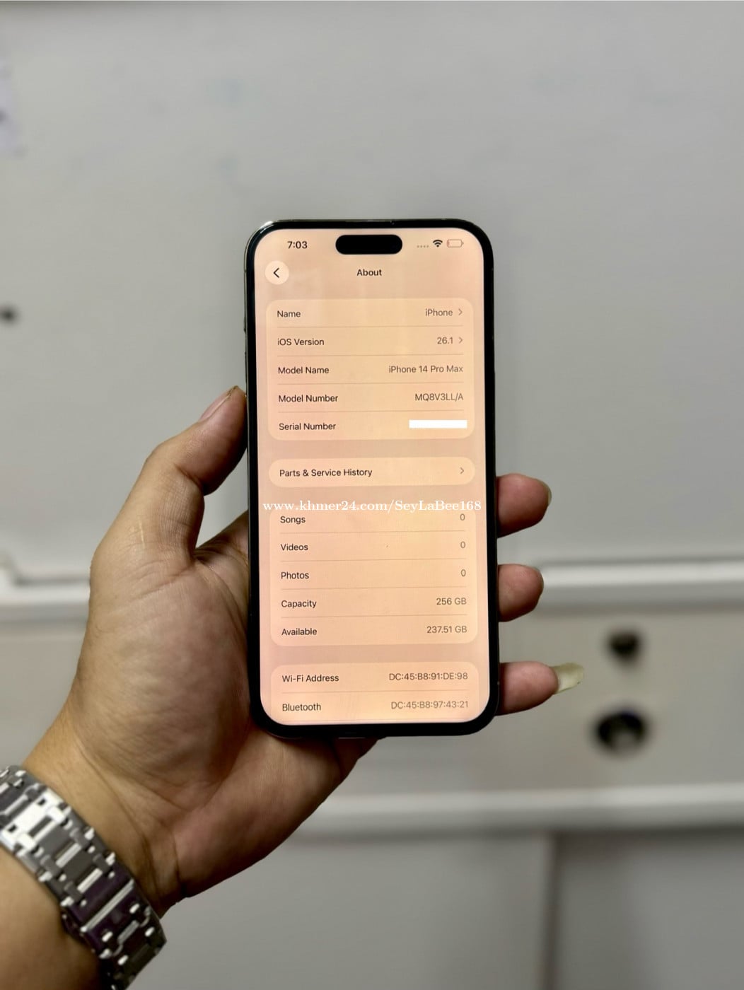 iPhone 14 Pro Max 256G ដូរអេក្រង់ថ្មី 120Hz កូល័រស្អាត គែមតូច ប្រើទ្រនាប់សុីម ប្រើបានគ្រប់ប្រព័ន្ធ បញ្ជាក់: ដូរអេក្រង់តែមួយគត់ ក្រៅពីអេក្រង់សំណុំទាំងអស់ Free ទ្រនាប់ស៊ីម គុណភាពល្អ ប្រើបានគ្រប់ប្រព័ន្ធ Free Case, Screen, ឆ្នាំងសាក,លែន អ្វីដែលអ្នកឃើញគឺជាអ្វីដែលអ្នកទទួលបាន អីវ៉ាន់នៅក្នុងរូបយ៉ាងម៉េច នៅក្រៅគឺយ៉ាងនោះ។ ធានាលើ ថាច់ និងម៉ាស៊ីន ១៥ថ្ងៃ ធានាលើ ទ្រនាប់ស៊ីម ៣ខែ ទីតាំង ទឹកល្អក់៣ ទួលគោក ភ្នំពេញ Tell:086908xxxClick To Call Telegram Tell:0888708xxxClick To Call Telegram: https://t.me/SeyLa_Bee Channel: https://t.me/iPhoneBSL