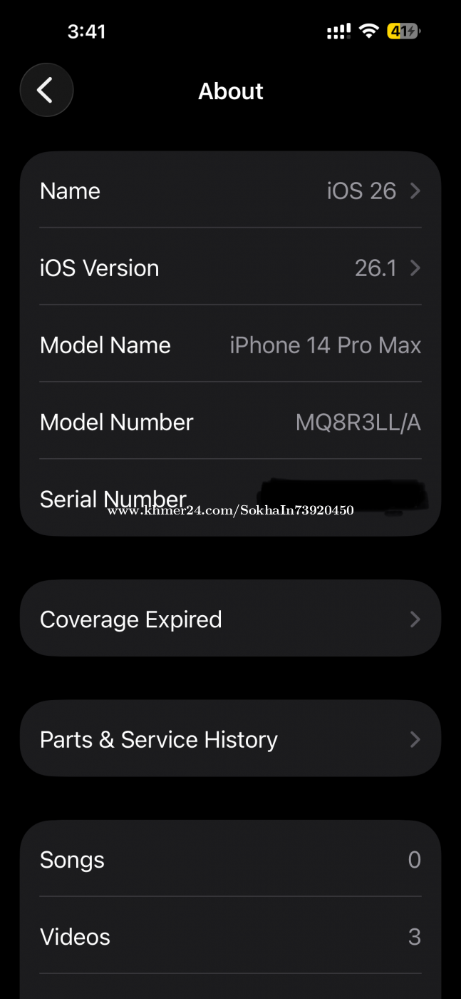 លក់ iPhone 14 Pro Max មេម៉ូរី 128GB តួនៅស្អាត 98% ពណណ៌ស្វាយ ម៉ាសុីនសាណុំតែប្តូរអេក្រង់ថ្មី បព្ជាក់តំលៃចចារបានតិចតួច បើចាប់អារម្មណ៌ទាក់ទងទូរស័ព្ទខាងក្រោម រឺ ឆាតក៏បាន។