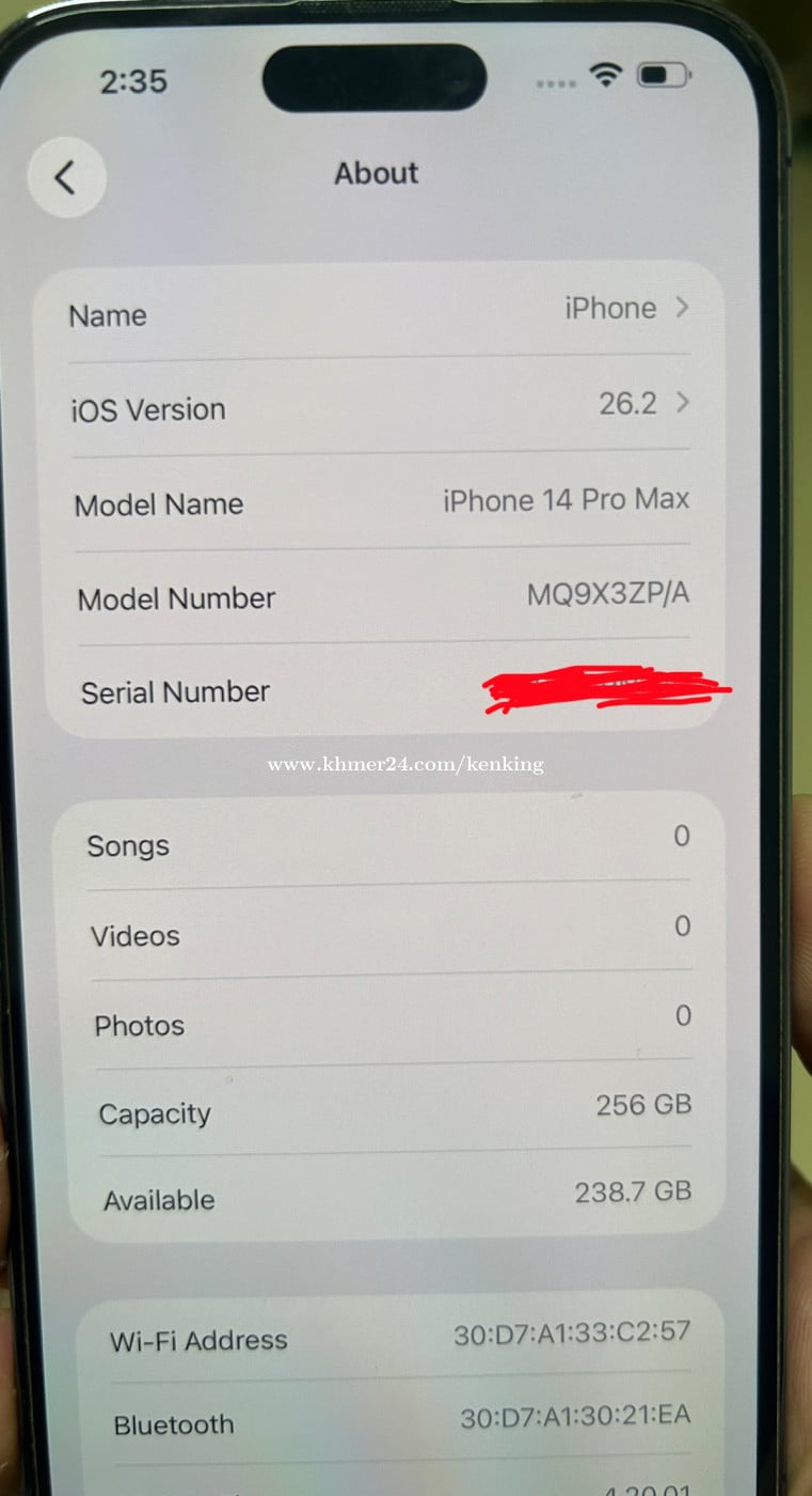 iPhone 14 Pro Max ( 256 GB ) Color : Purple Version : IOS 26.2 សំណុំសុីន,នៅថ្មី 90% Telegram : @Ken250615