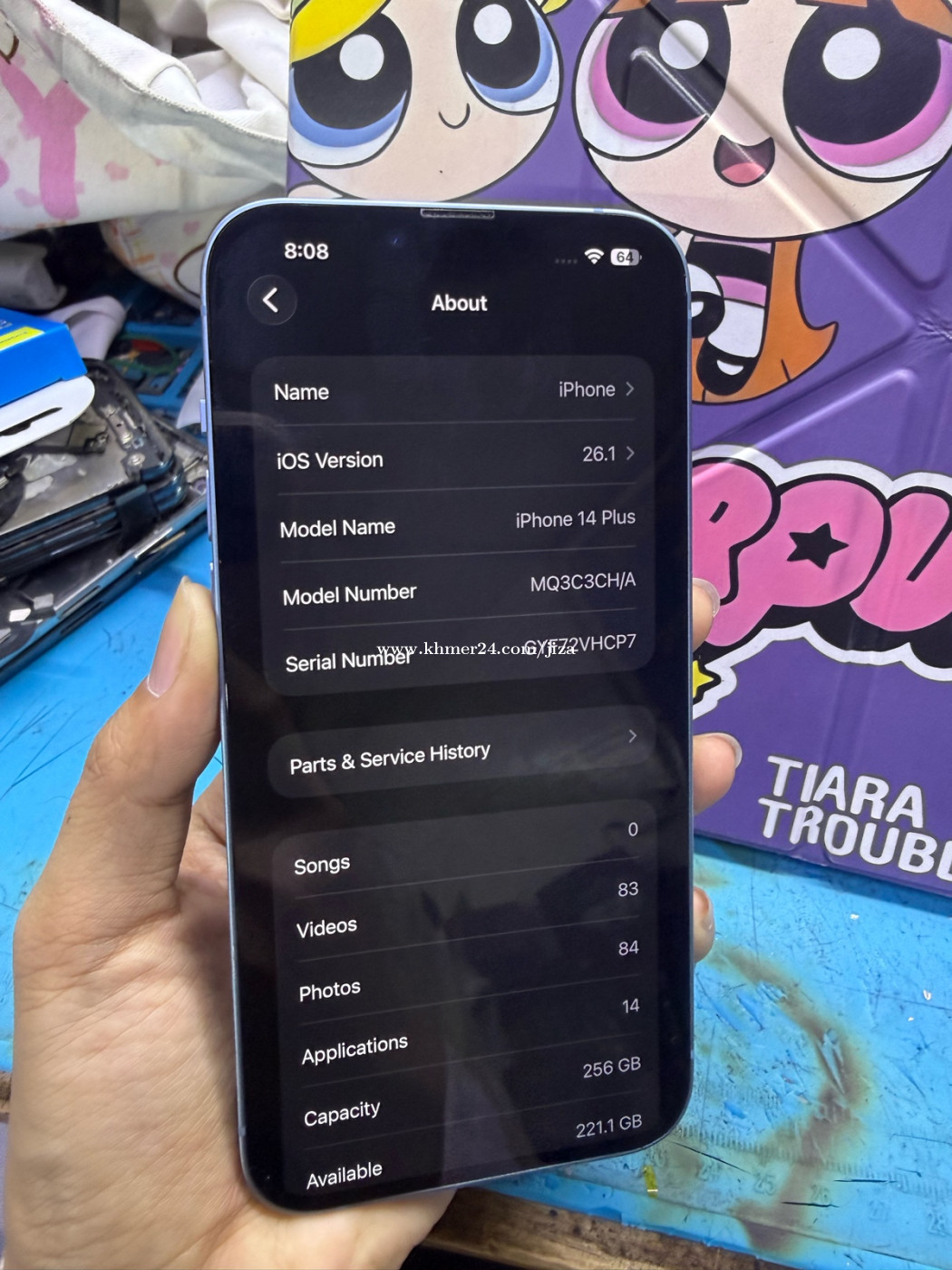 IPhone 14Plus សាណុំសុីន 256g 365$ តួ99%