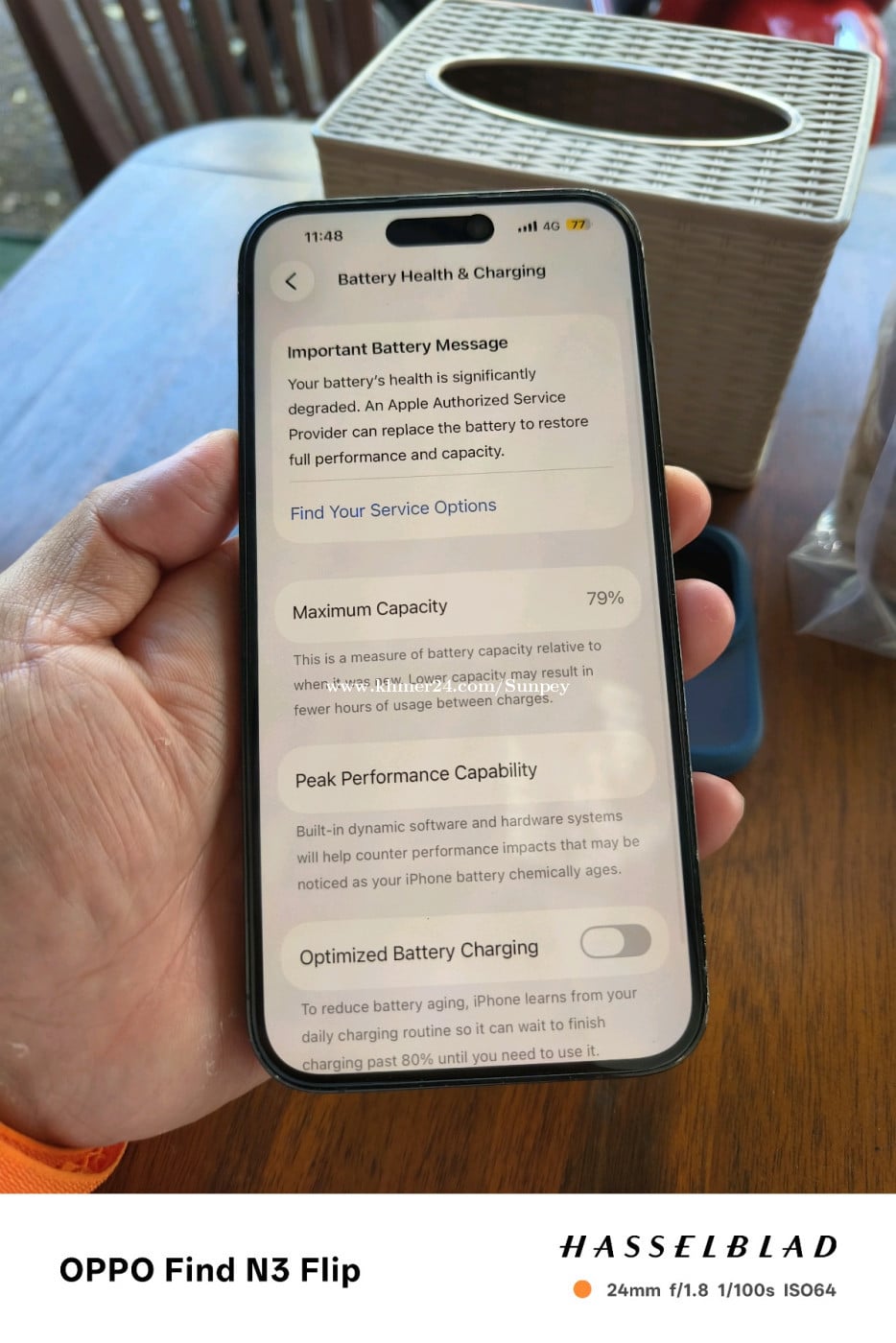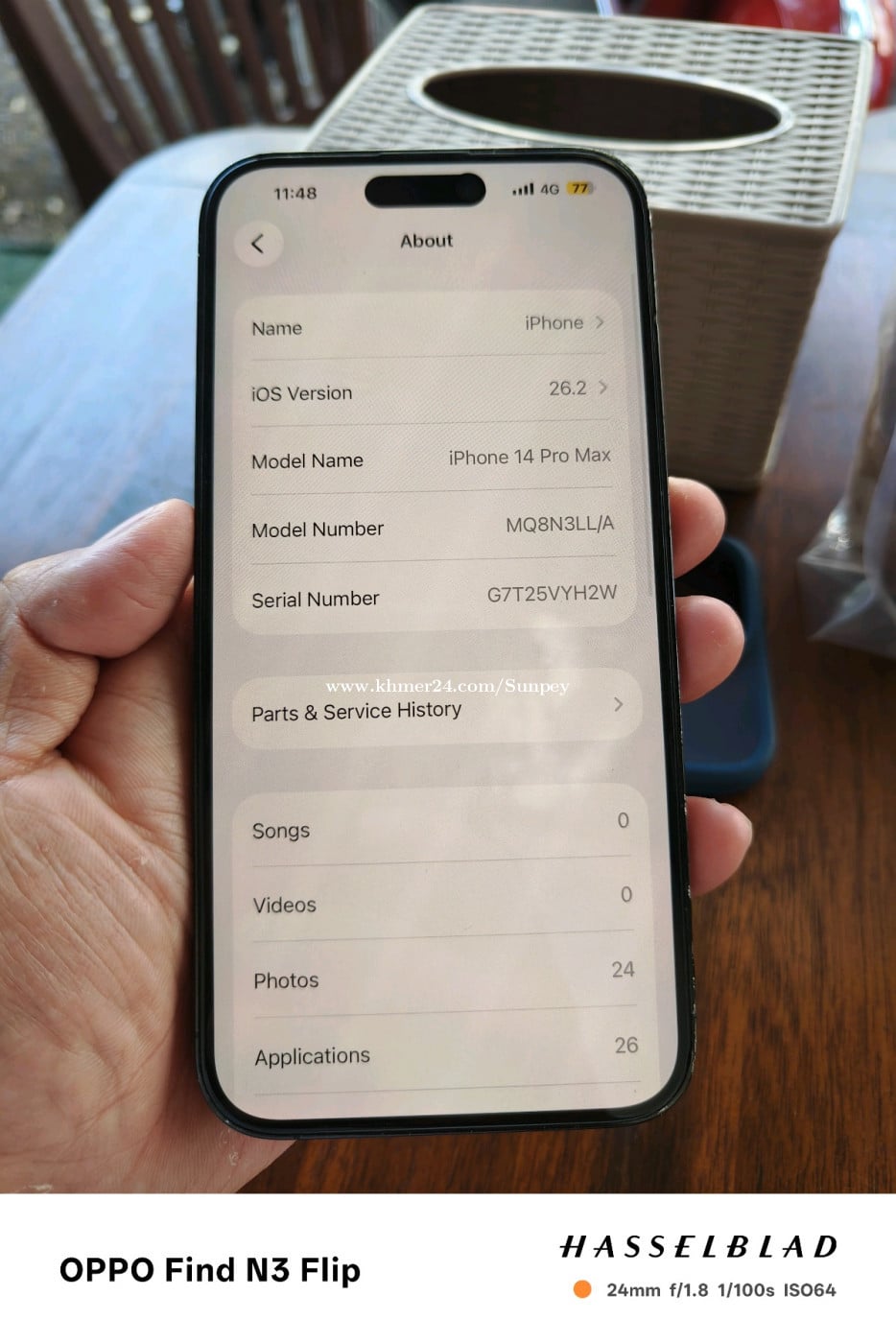 Iphone 14Pro Max LL/A E-Sim 96% ណែន សានុំសុីនតាំងអស់ • អេក្រង់សុីនស្អាតគ្មានដាន • ម៉ាស៊ីនសានុំមិនដែលជួសជុល • មាន Face ID • ថ្មសុីននៅ 79% កាន់ណាស់ • ធានាមួយអាទិត្យទៅលើការប្រើប្រាស់ តួរស្ទើរមួយជំហៀង ក្រៅពីនិងស្អាត មានគ្រឿងមួយឆុត ១.ឆ្នាំងសាក ២.screen ៣.case 4.Len camera ដាច់ 420$