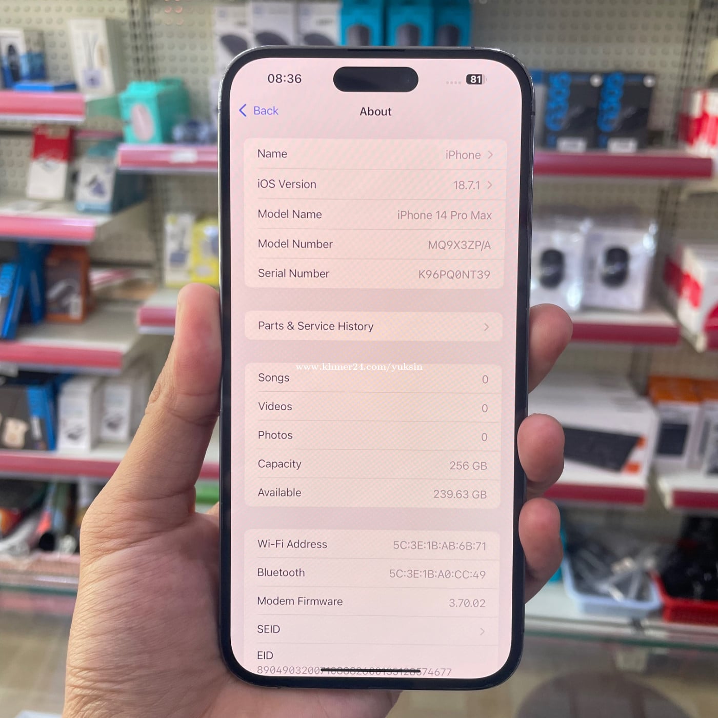 Condition: Original Sim: ZP sim+esim Possessor:A16 Color: Purple Quality: 97%new Storage:256G Camera:48M Battery: 87% IOS: 18.7.1 Display:6.7inch