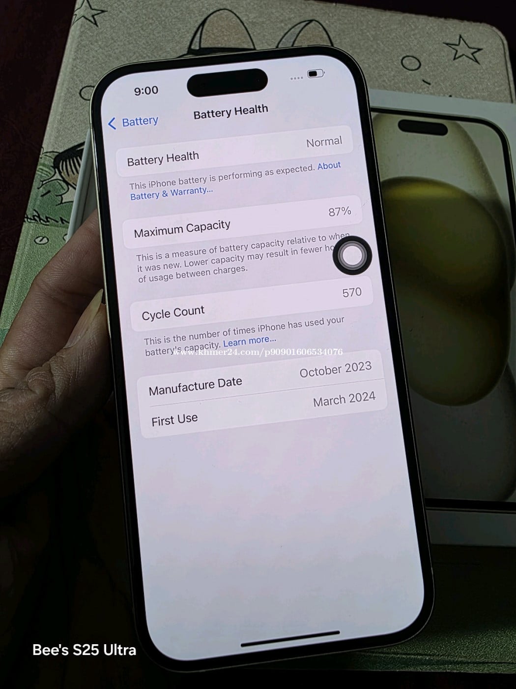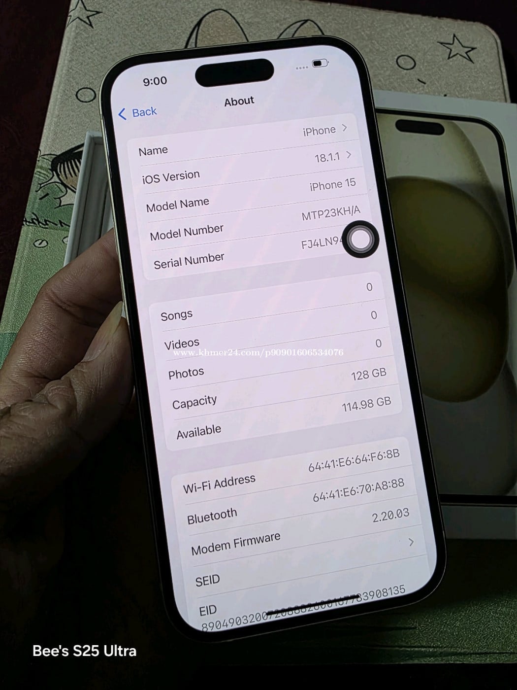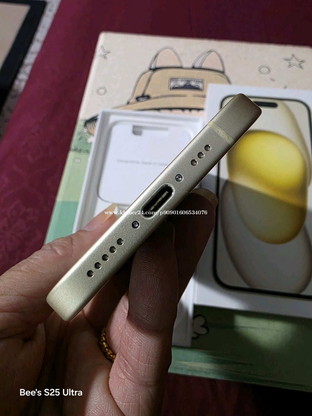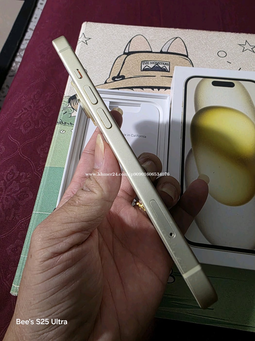 iPhone 15 128g ពណ៍លឿង សំនុំណែនស្អាត Sim1+Esim ថ្មស៊ីន 87% Full Set លក់ 495$ Tel: 093989xxxClick To Call