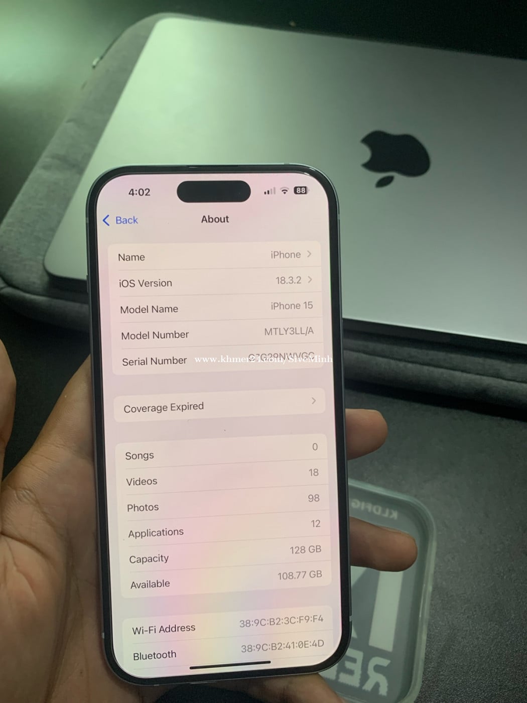 ខ្ញុំចង់លក់ទូរស័ព្ទប្រើផ្ទាល់ខ្លួនមួយ iPhone 15 LLA 128gb គុណភាពដូចរូប Price 504