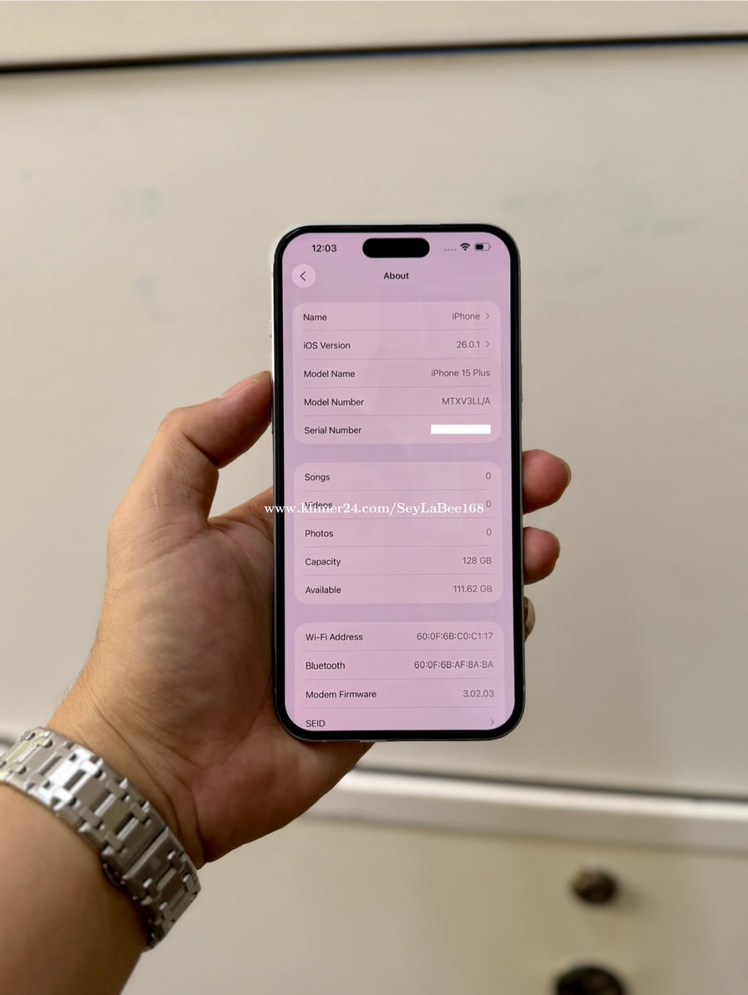 iPhone 15 Plus 128G មួយទឹក lock simមិនបាច់ទ្រាប់ទ្រនាប់ស៊ីម ដាក់ស៊ីមប្រើយកម៉ង ( សុីម2 ) Free Case, Screen, ឆ្នាំងសាក,លែន អ្វីដែលអ្នកឃើញគឺជាអ្វីដែលអ្នកទទួលបាន អីវ៉ាន់នៅក្នុងរូបយ៉ាងម៉េច នៅក្រៅគឺយ៉ាងនោះ។ ធានាលើ ថាច់ និងម៉ាស៊ីន 1ខែ ទីតាំង ទឹកល្អក់៣ ទួលគោក ភ្នំពេញ Tell:086908xxxClick To Call Telegram Tell:0888708xxxClick To Call Telegram: https://t.me/SeyLa_Bee Channel: https://t.me/iPhoneBSL