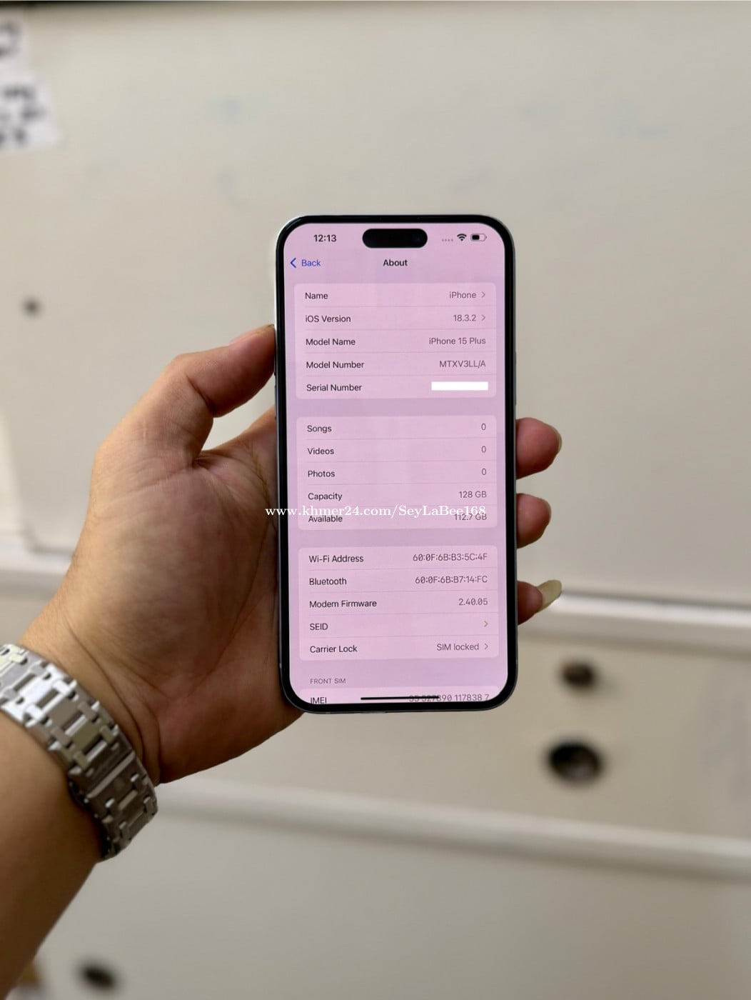 iPhone 15 Plus 128G Color Blue មួយទឹក lock simមិនបាច់ទ្រាប់ទ្រនាប់ស៊ីម ដាក់ស៊ីមប្រើយកម៉ង ( សុីម2 ) Free Case, Screen, ឆ្នាំងសាក,លែន អ្វីដែលអ្នកឃើញគឺជាអ្វីដែលអ្នកទទួលបាន អីវ៉ាន់នៅក្នុងរូបយ៉ាងម៉េច នៅក្រៅគឺយ៉ាងនោះ។ ធានាលើ ថាច់ និងម៉ាស៊ីន 1ខែ ទីតាំង ទឹកល្អក់៣ ទួលគោក ភ្នំពេញ Tell:086908xxxClick To Call Telegram Tell:0888708xxxClick To Call Telegram: https://t.me/SeyLa_Bee Channel: https://t.me/iPhoneBSL