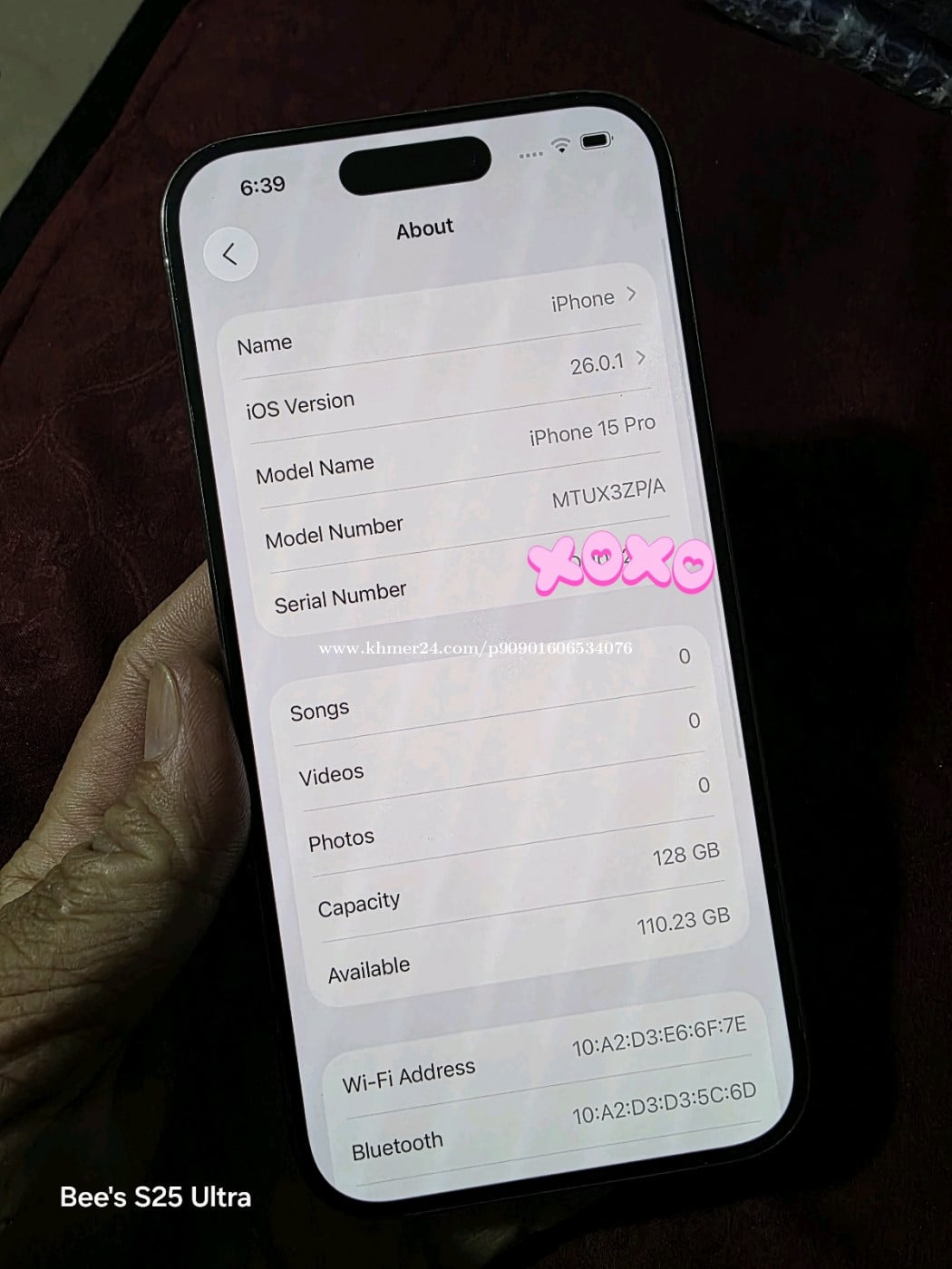 iPhone 15 Pro 128g សំនុំណែន បែកតែខ្នងទេ 515$ Tel: 093989xxxClick To Call