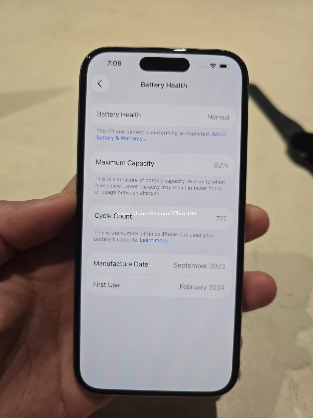 Iphone 15 Pro Max ទំហំផ្ទុក (1T) Model LLA Color Natural តួស្អាត 999.99% 🥰💛 Battery Health 82% បងៗមានតម្រូវការអាច Call ឬឆាតតាម Telegram