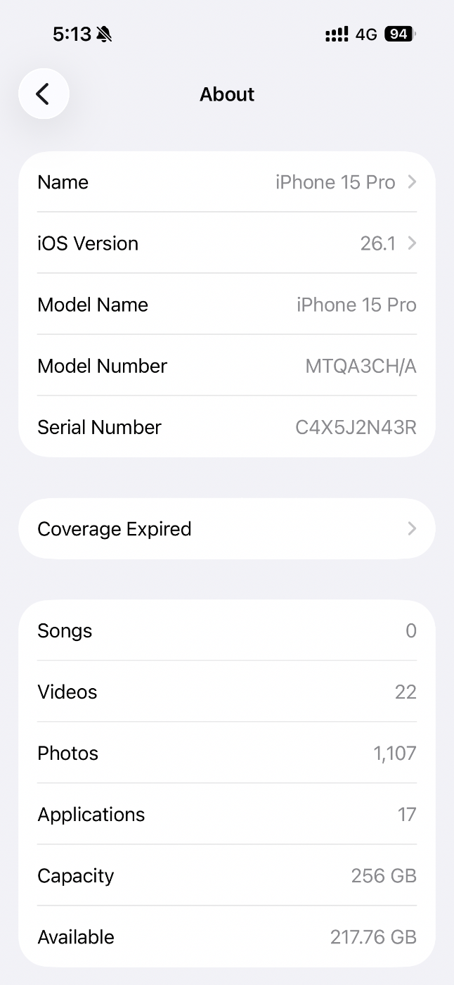 iPhone 15 Pro 256g Condition 99% Battery health 87%
