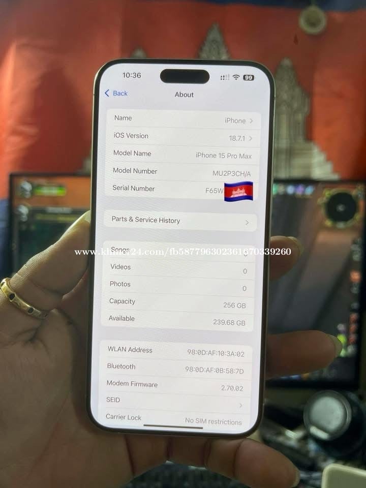iphone 15 pro max / 256g / CH sim 2 / មានស្កេន / ប្រវត្តិធ្លាប់ដូរអេក្រង់ម្ដងដាក់អេក្រង់ហ្សុីនចូលវិញ ថ្មនៅខ្ពស់ 88% camara មុខអ៊ុចស្វាយតូចមួយដូចរូប ធានាអេក្រង់ហ្សុីនធានាម៉ាសុីនមិនធ្លាប់ជួសជុល លក់តំលៃក្រោមទីផ្សារនៅកម្ពុជា 🇰🇭 585$ ដាច់ ☎️📞0968911xxxClick To Call telegram📞☎️