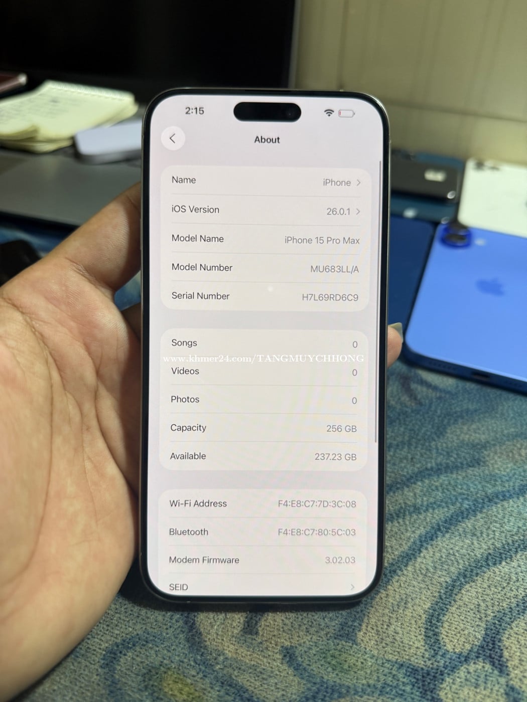 iPhone 15 Pro Max 256G LLA សំណុំសុីនណែន ស្អាត 740$
