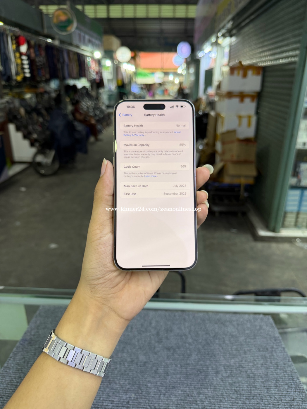 iPhone 15 PRO MAX 256G ZA សាណុំ Zin ណែន Condition 98% Battery🔋85% តម្លៃ 775$ #ភ្នុំពេញ Telegram/☎️0976955xxxClick To Call