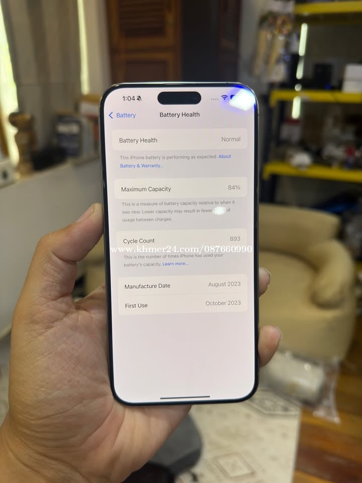 iPhone 15 Pro Max 512GB ប្រើផ្ទាល់ខ្លួន - ថ្ម 84% - ZP Esim + Sim - អេក្រង់មានស្នាមឆ្កូតបន្តិច - តួខាងក្រោយមានស្នាមដោយសារដាក់ Case អាចមកមើលបាននៅលំហកាហ្វេខាងច្បារអំពៅ https://maps.app.goo.gl/zXpqF5iMmq8nYP4K8 Telegram: 087660xxxClick To Call https://t.me/parinhajomnot