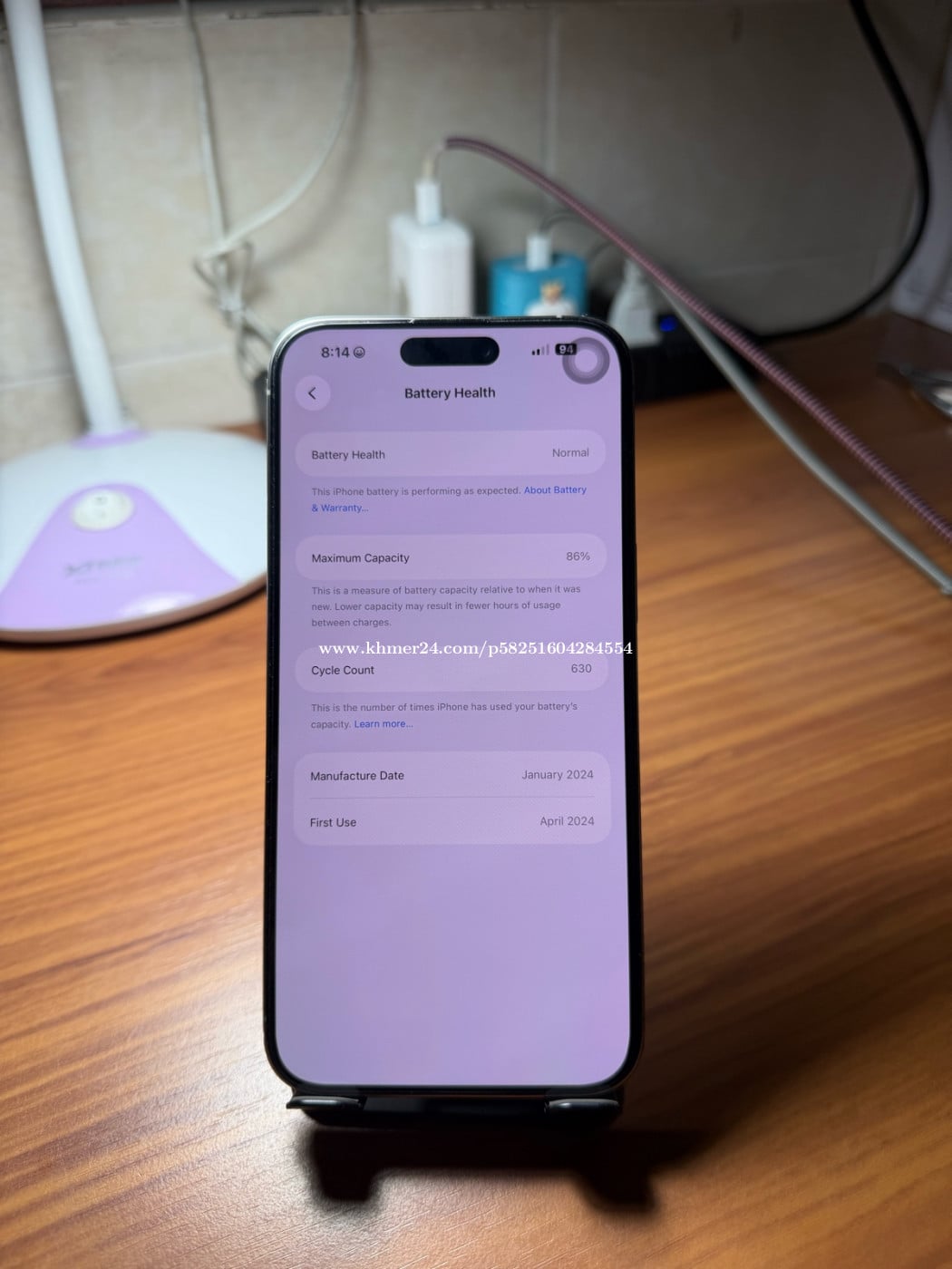 iPhone 15 Pro Max Titanium 256G Condition 99% Battery 86% តួនៅល្អ អត់ដែលធ្លាក់ ប៉ះ សំណុំ zin