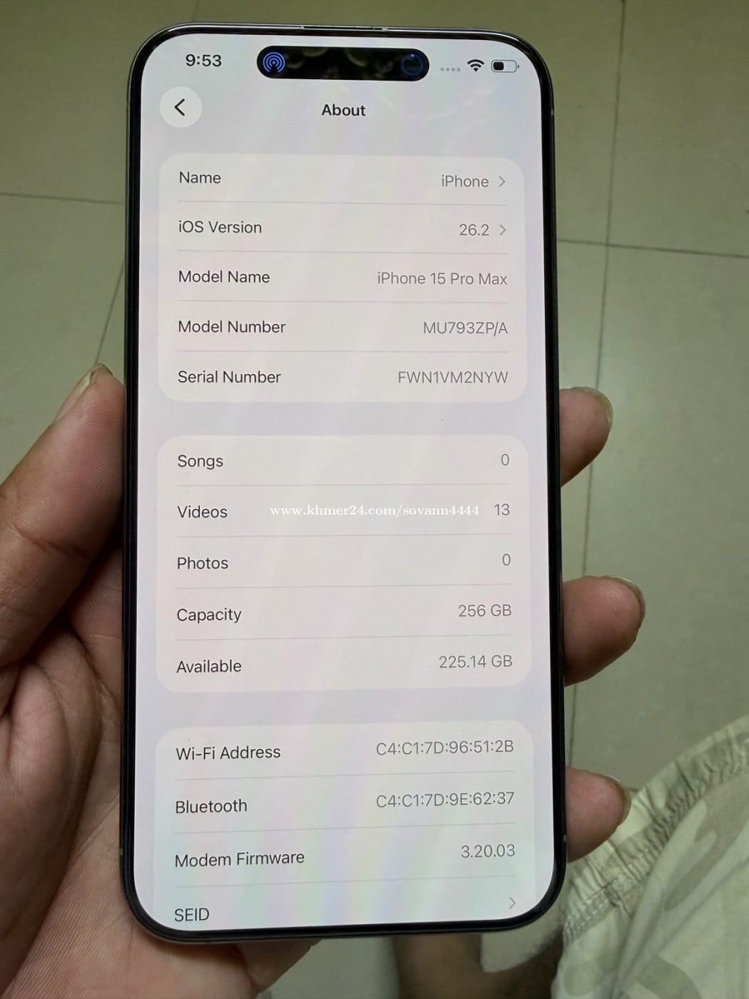 Iphone 15 pro max ZP របស់ប្រើផ្ទាល់ស្អាត 99% ថ្មសល់ 85%