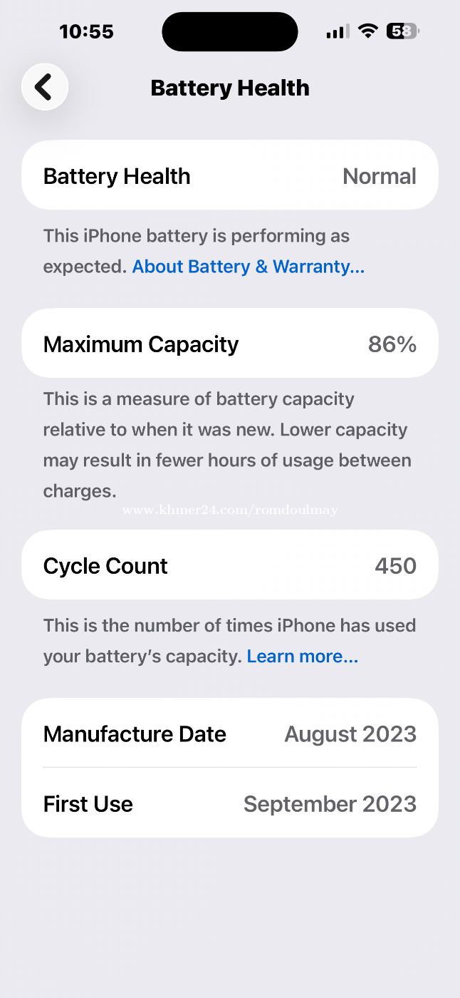 ល្អជាមួយថ្ម 86% Good with 86% battery.