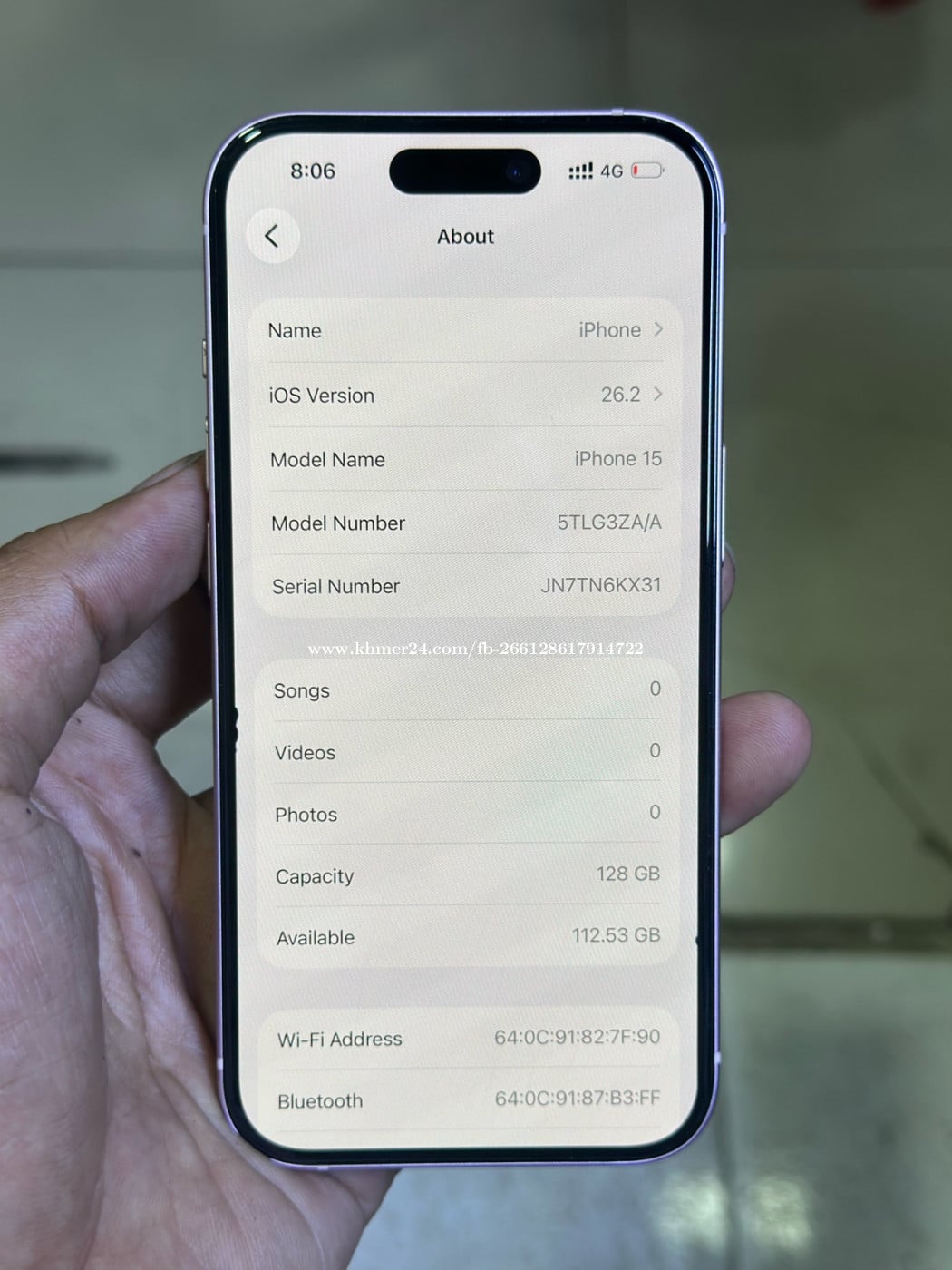 iPhone 15 ZA/A SlM2 128G 335$ ថ្ម100% កញ្ចក់មុខសសៃសក់តិចៗ