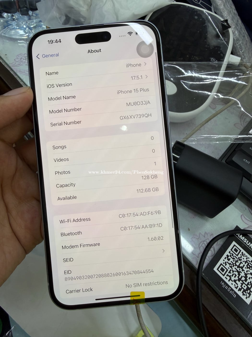 iPhone 15Plus 128GB JA A- 545$ ធានាសាណុំហ្សុីន 1 Month Warranty 010768xxxClick To Call