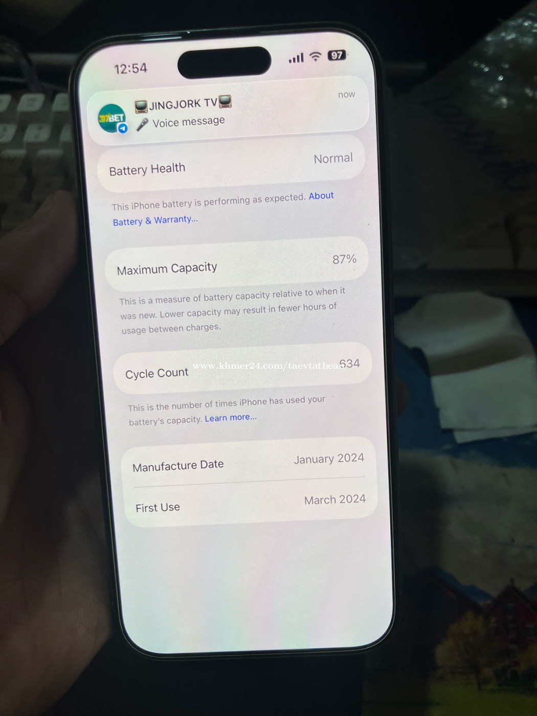 iPhone 15Pro small សាណុំសុីនhave box ថ្មនៅ87% ត្រូវការinbox me b b 0885083xxxClick To Call