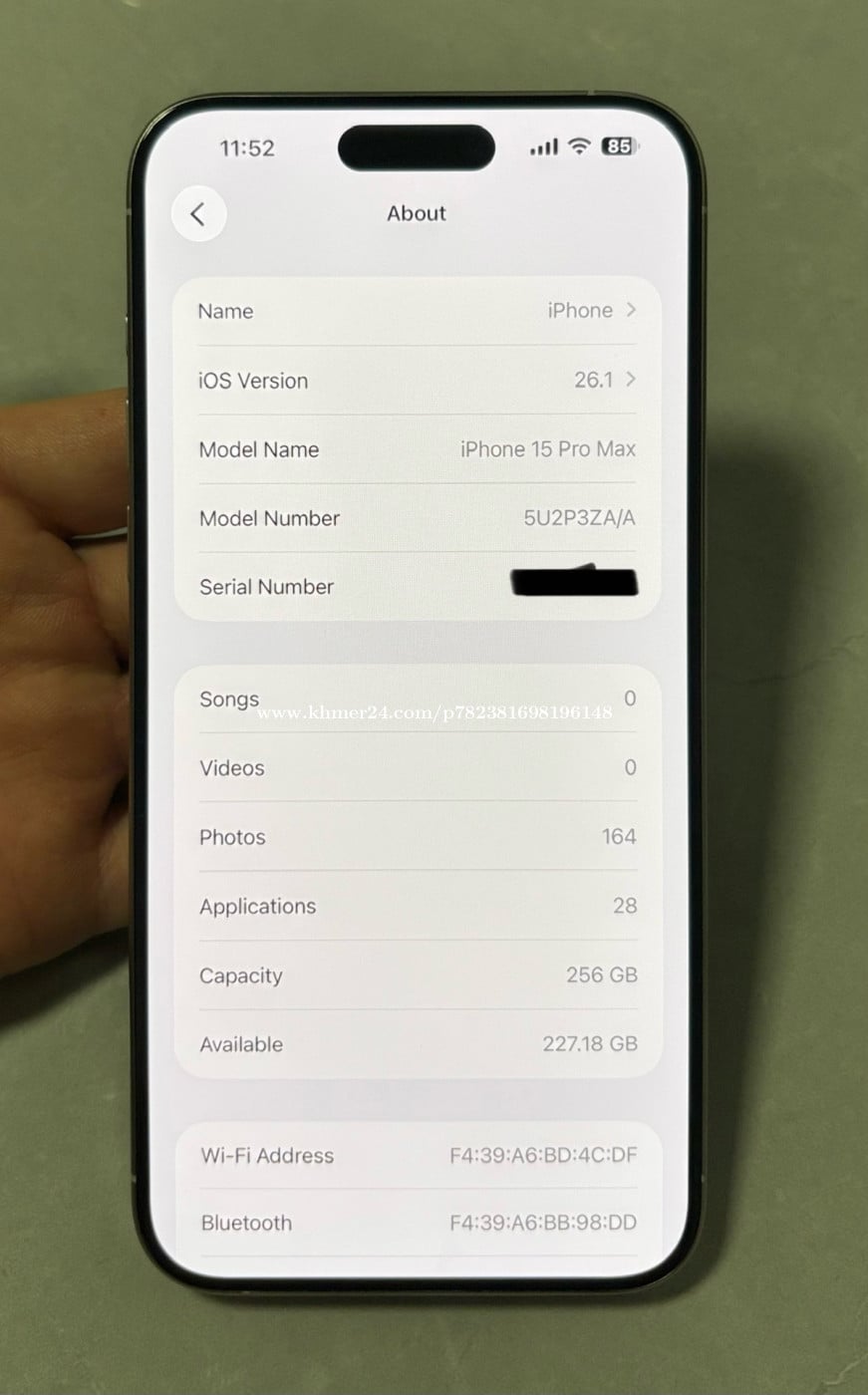 iPhone 15promax 256g ZA dual sim, all good and all original, battery health 89%, phone + charger and case sell for 750$ location kps Sihanoukville