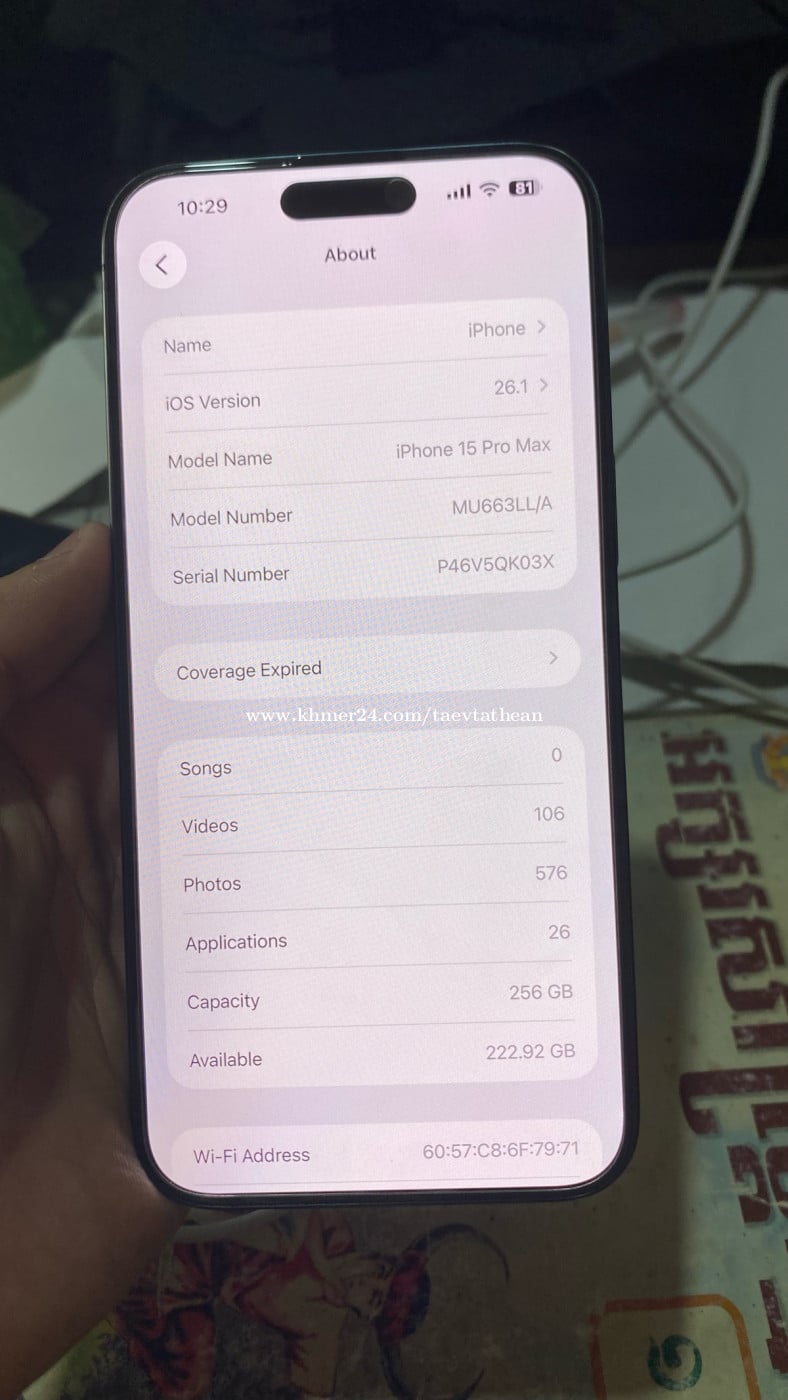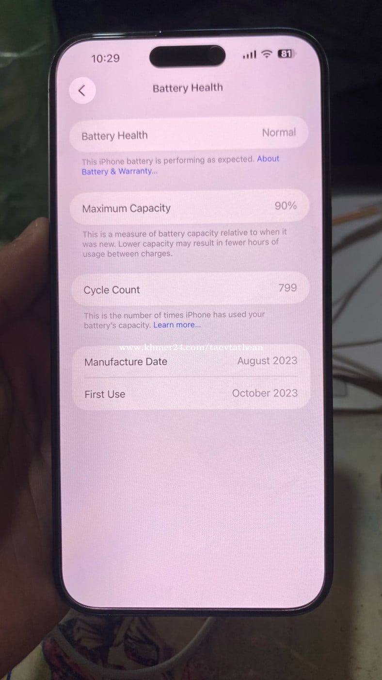 iPhone 15Promax សាណុំសុីនណែន ថ្ម90% លក់នឹងវៃដូរ ត្រូវការឆាត0885083xxxClick To Call