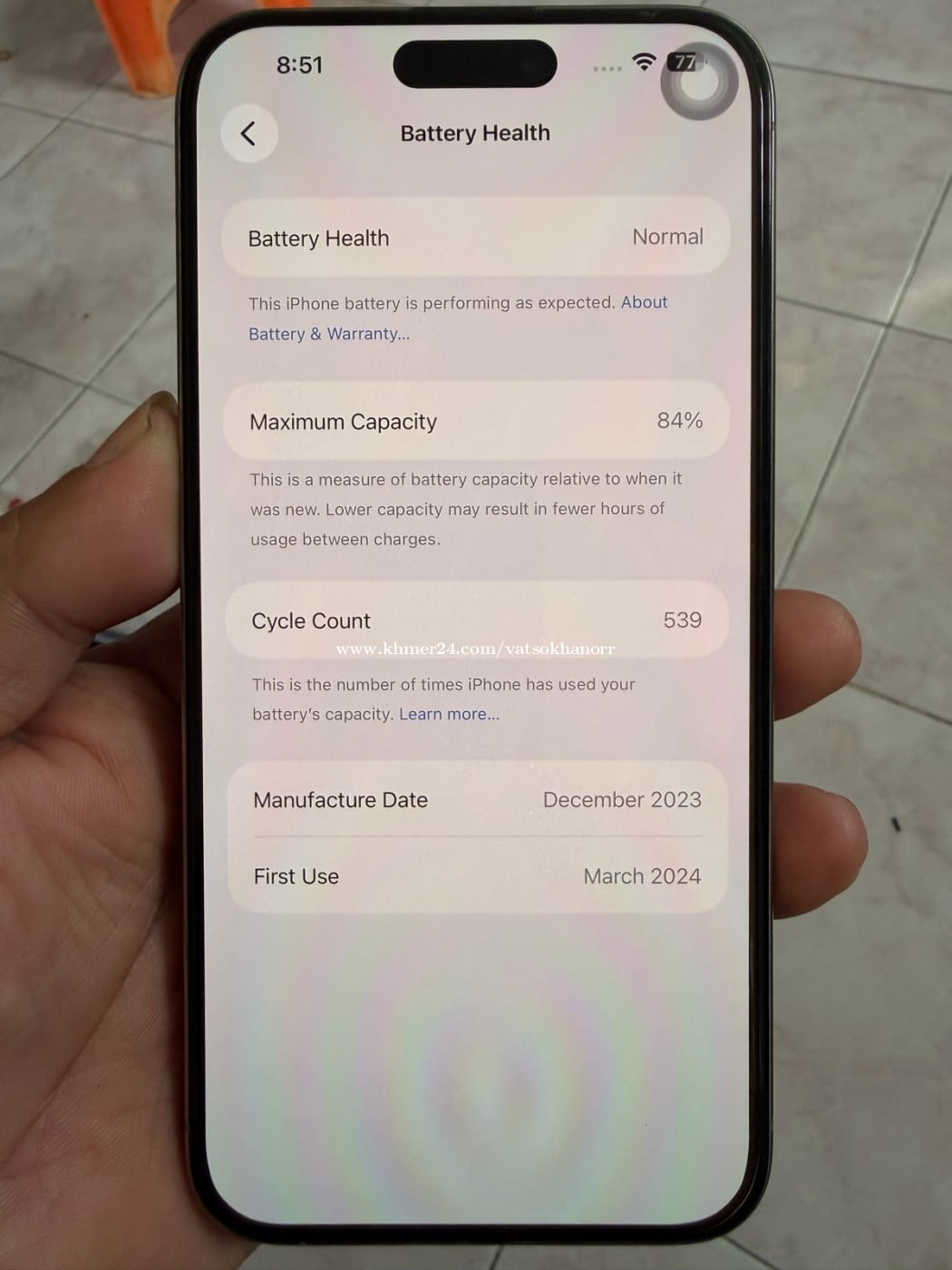 iPhone 15promax LL/A តួរស្អាត99% ថ្ម84%កាន់ល្អ