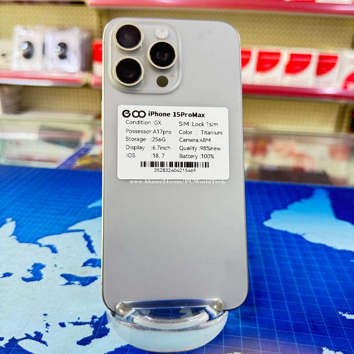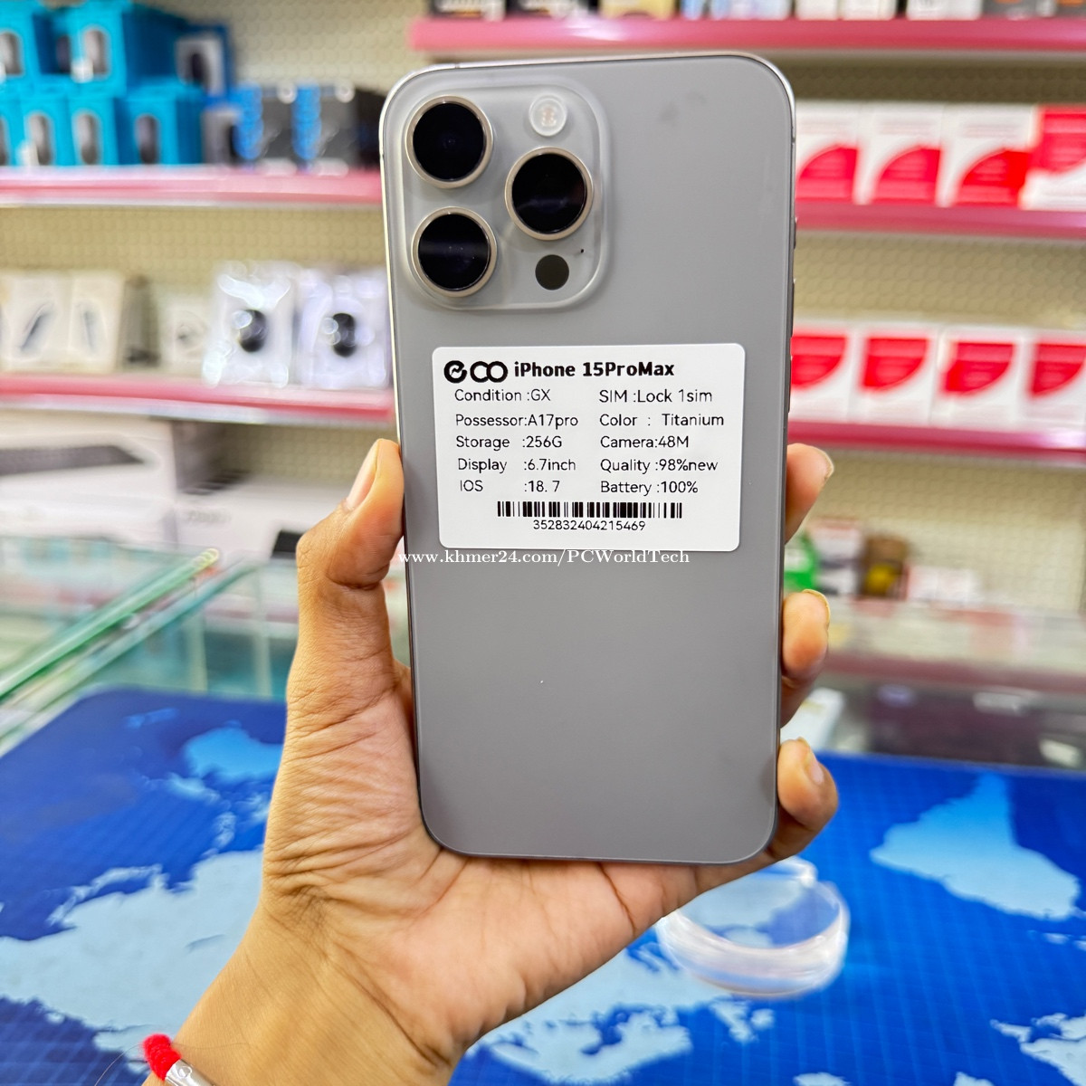 Condition. GX Possesses A17pro Storage 256G Display 6.7inch IOS. 18.7 Color Titanium Camera 48M Quality 98% Battery 100%